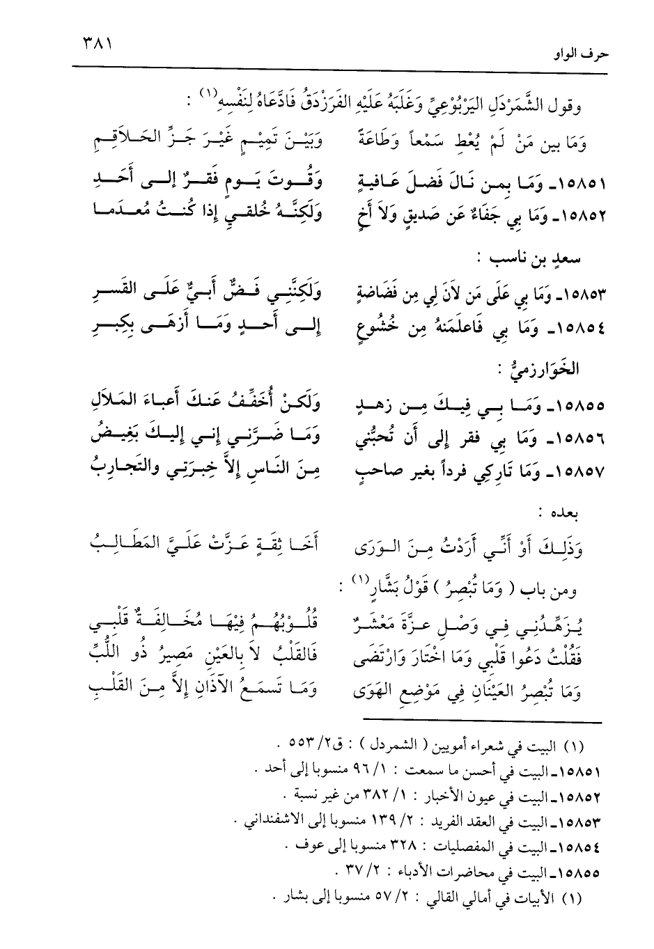 15854 - البيت في المفصليات: 328 منسوبا إلى عوف.