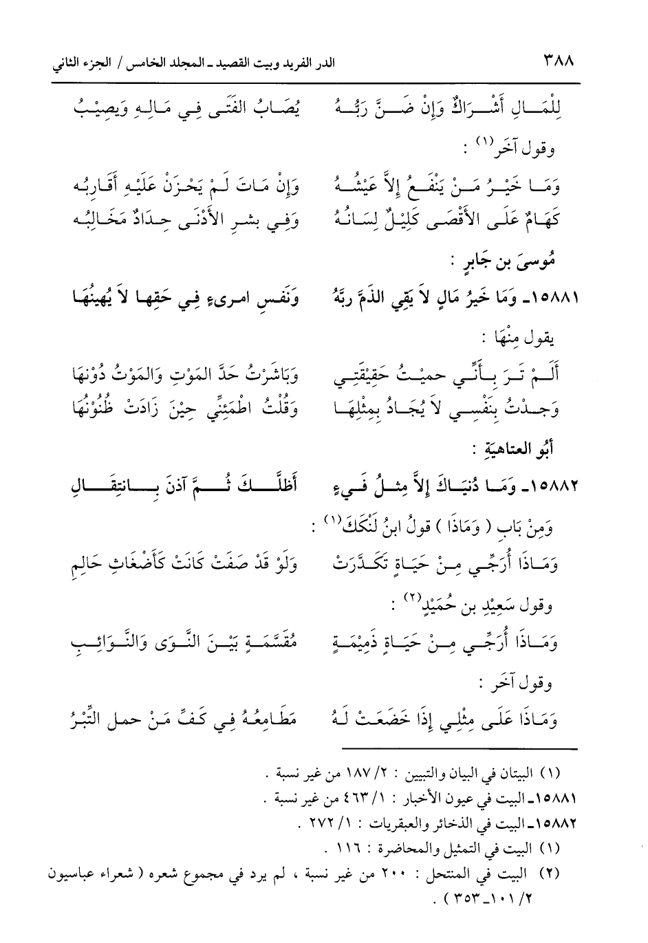 (¬2) البيت في المنتحل: 200 من غير نسبة، لم يرد في مجموع شعره (شعراء عباسيون 2/ 101 - 353).