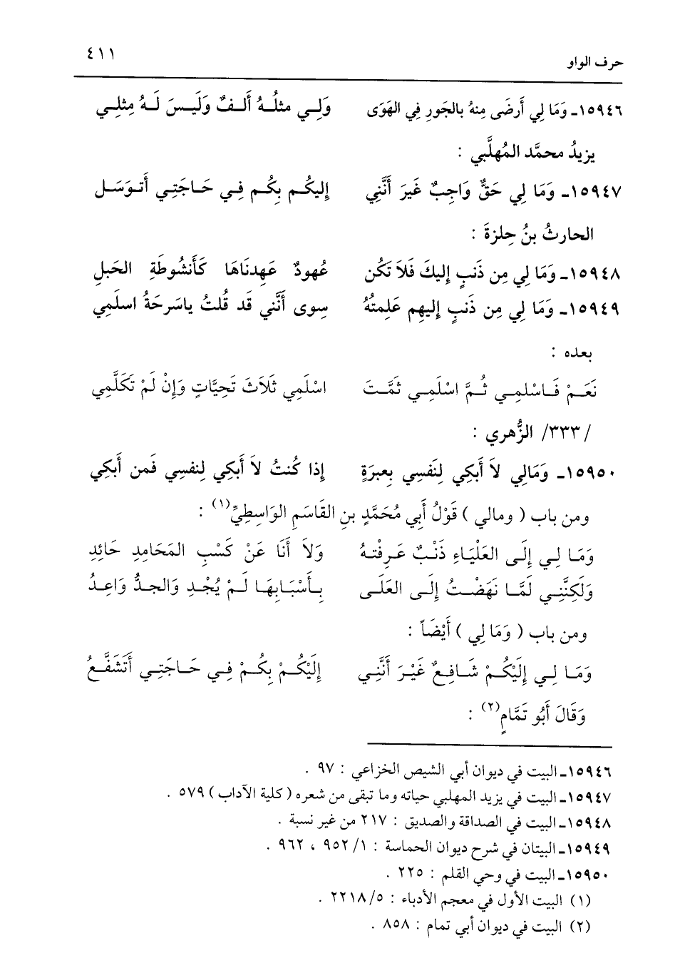 15950 - وَمَا لِي لَا أَبكِي لِنَفسِي بِعبرَةٍ ... إِذَا كُنتُ لَا أَبكِي لِنفسِي فَمن أَبكِي