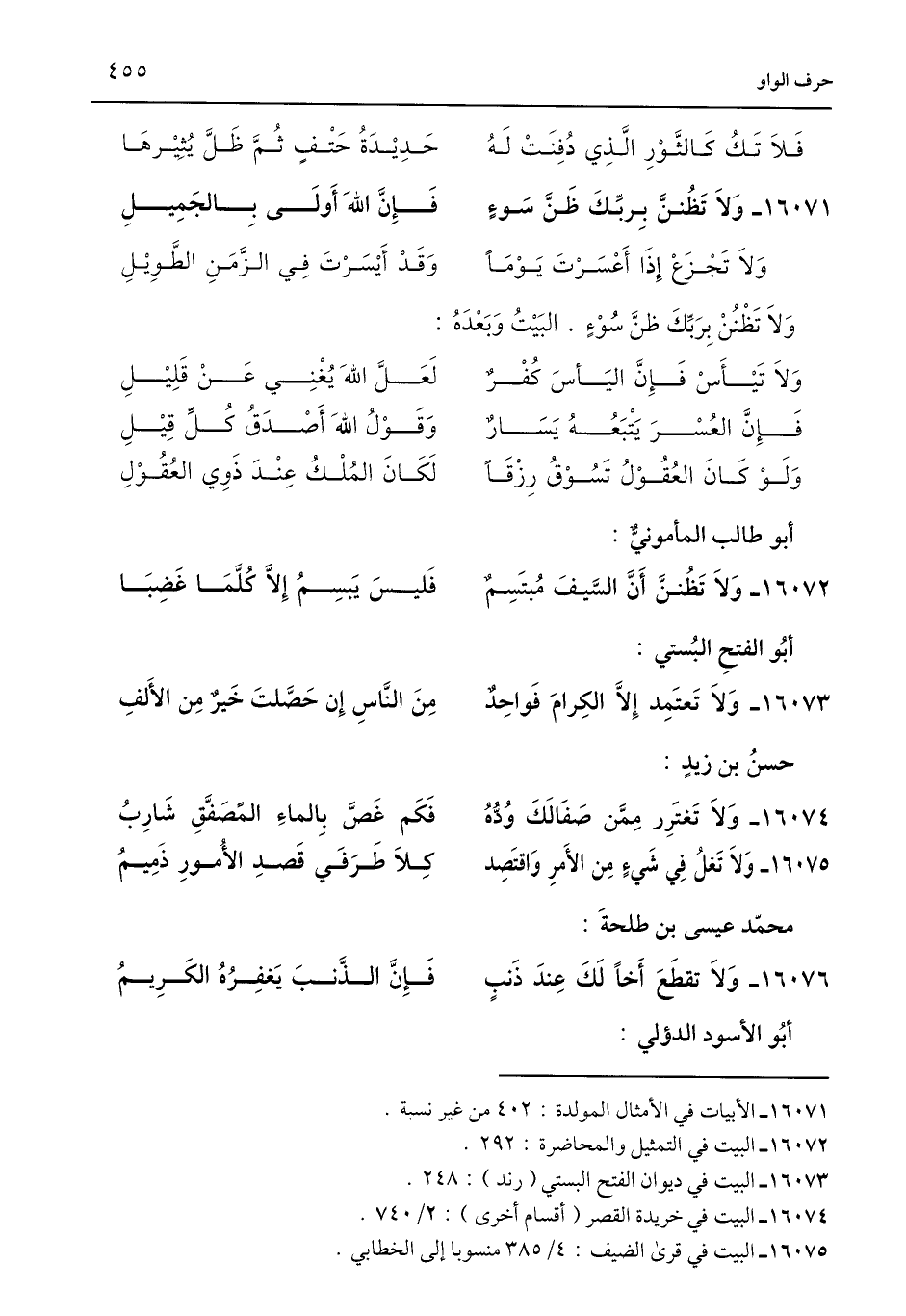 16071 - الأبيات في الأمثال المولدة: 402 من غير نسبة.