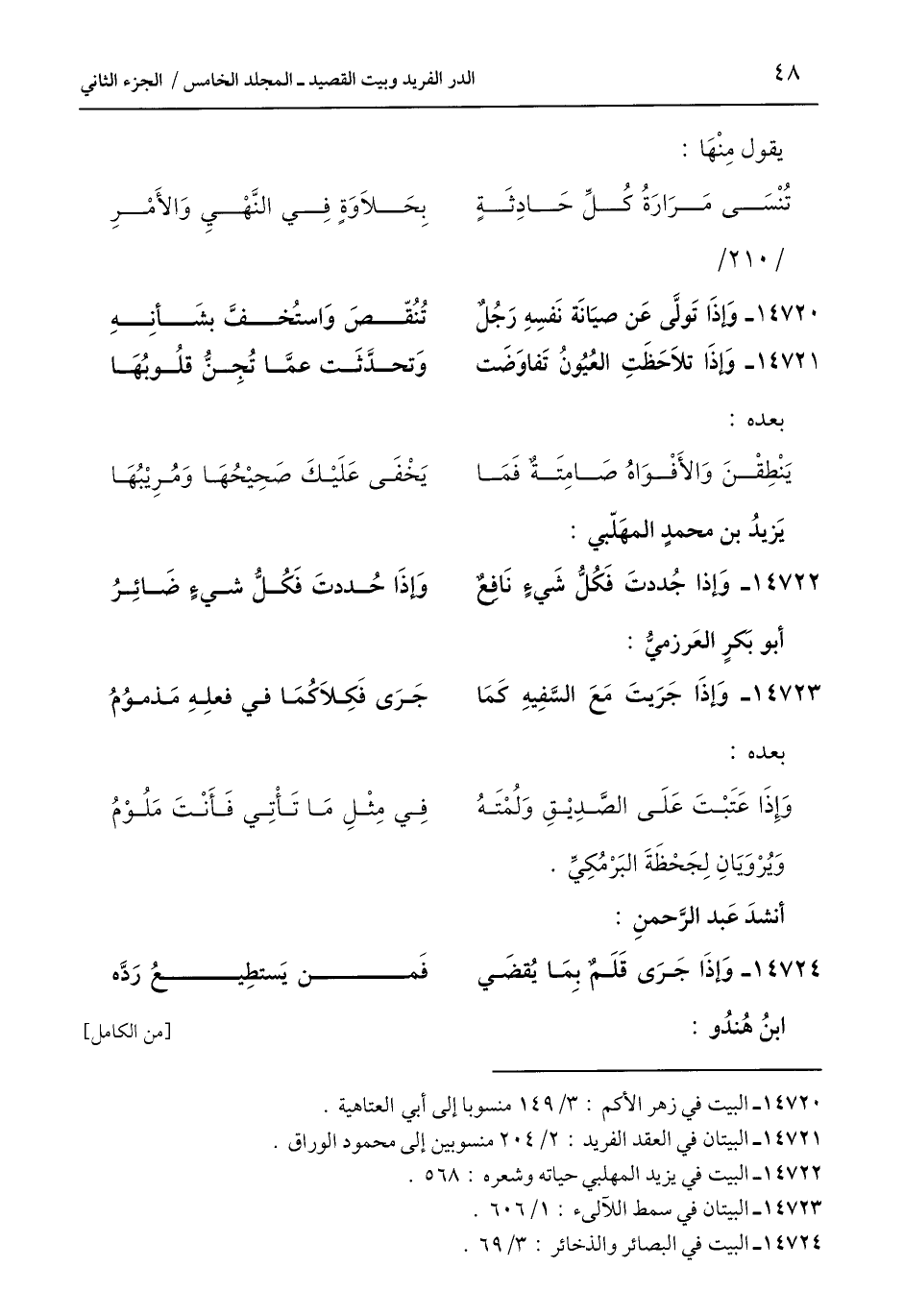14722 - البيت في يزيد المهلبي حياته وشعره: 568.