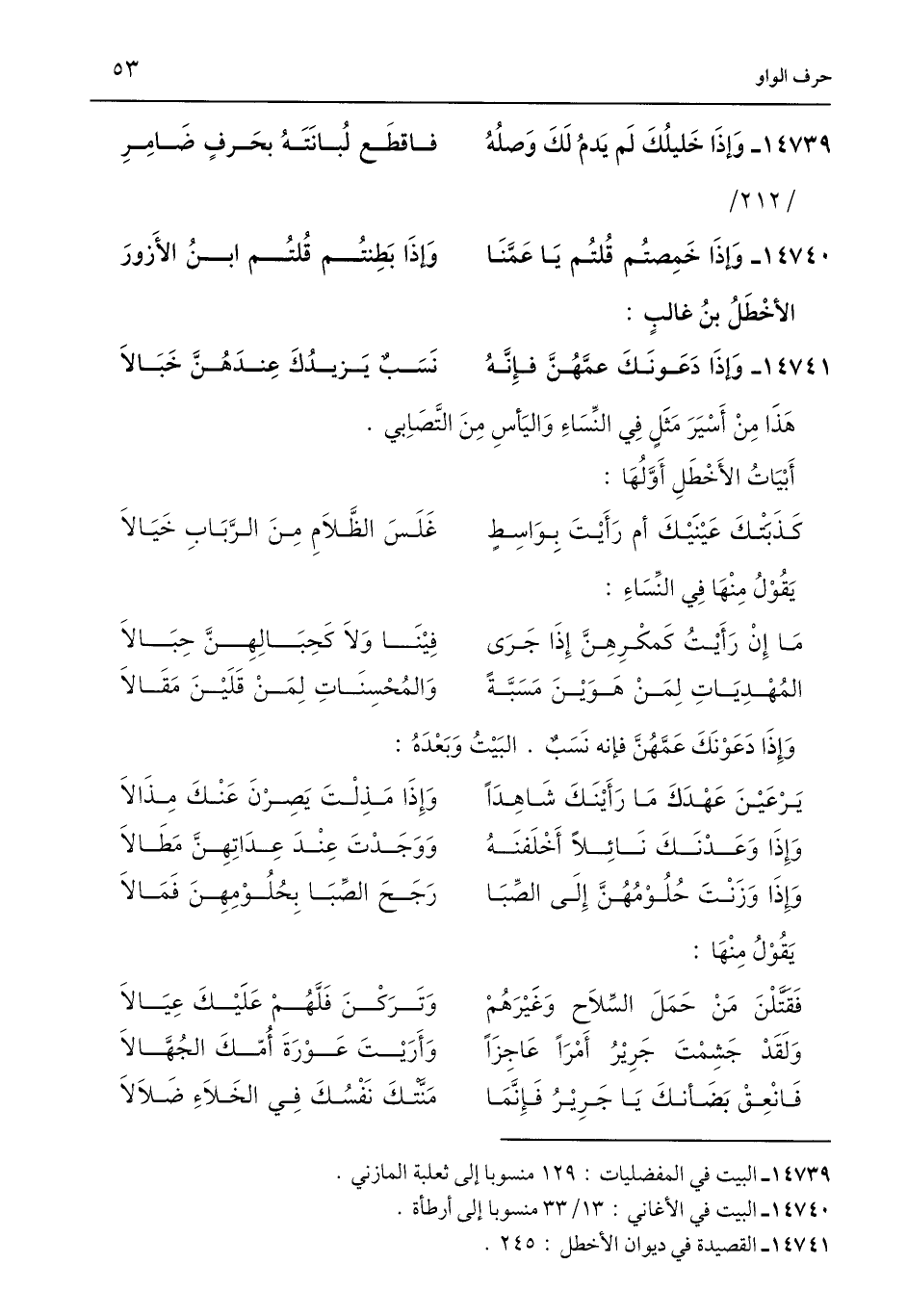 أَبْيَاتُ الأَخْطَلِ أَوَّلُهَا: