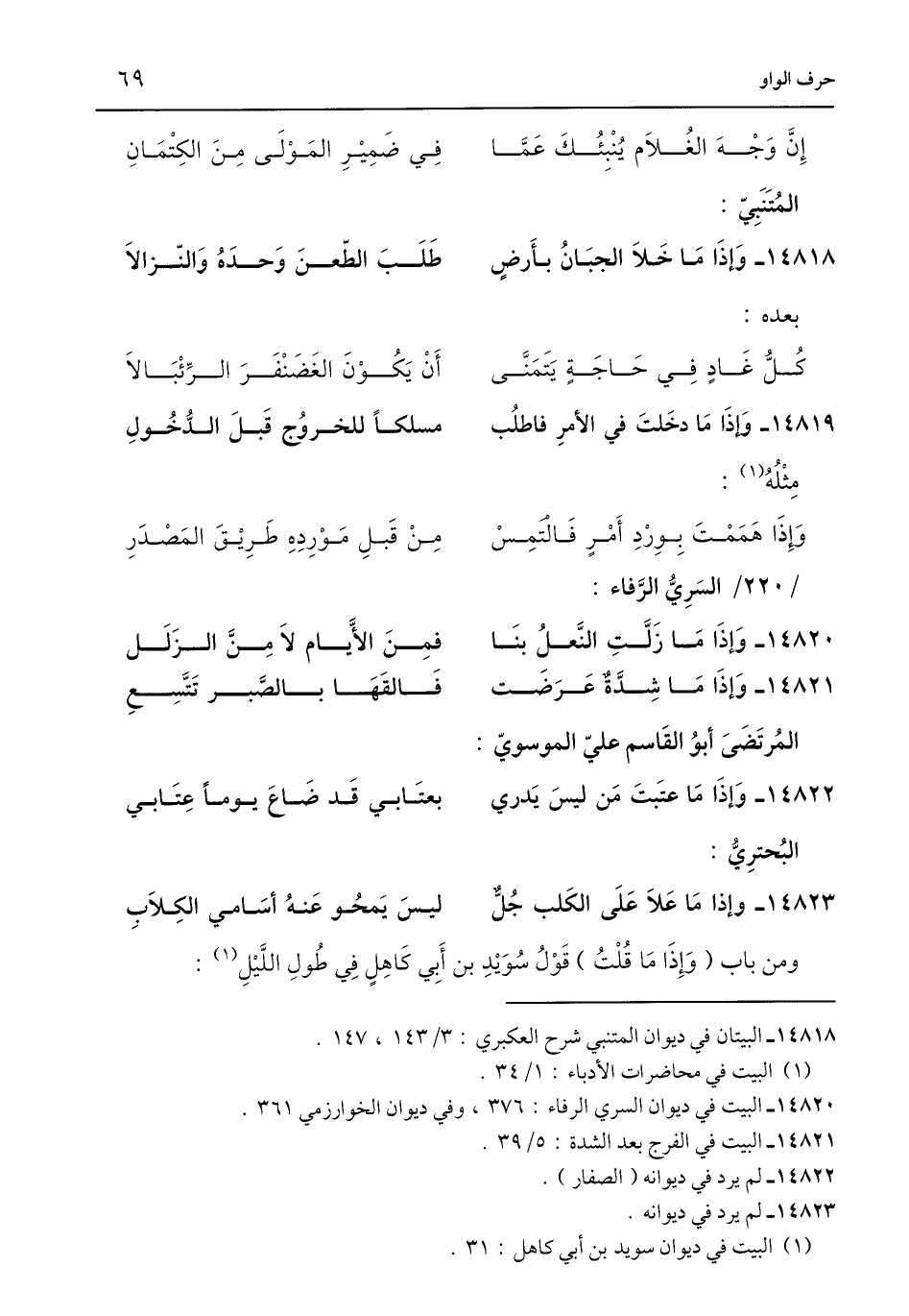 14820 - البيت في ديوان السري الرفاء: 376، وفي ديوان الخوارزمي 361.