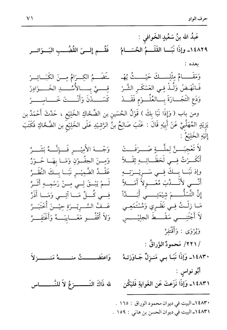 14831 - البيت في ديوان الحسن بن هاني: 159.