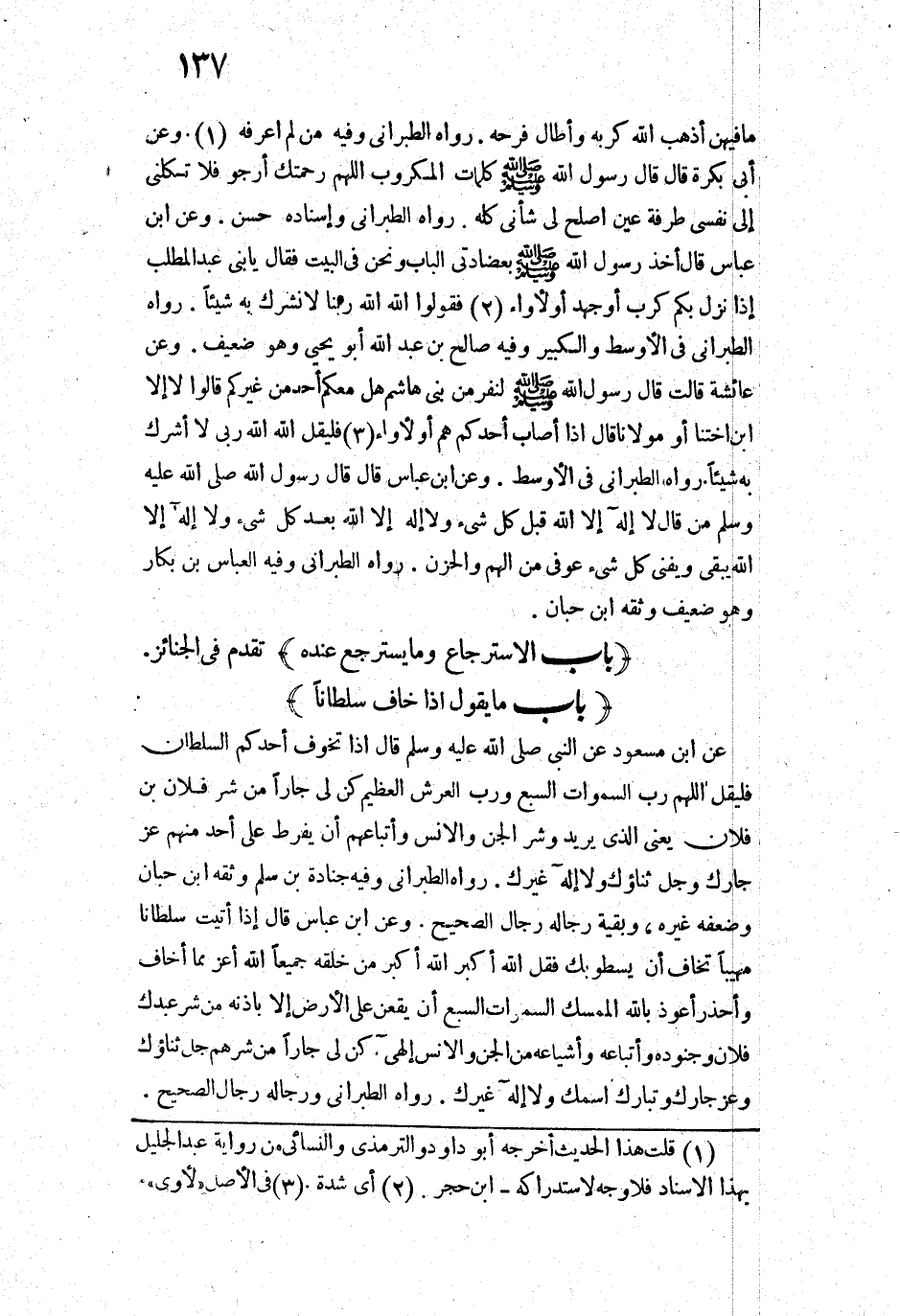 17135 - عَنِ ابْنِ مَسْعُودٍ، عَنِ النَّبِيِّ - صَلَّى اللَّهُ عَلَيْهِ وَسَلَّمَ - قَالَ: " «إِذَا تَخَوَّفَ أَحَدُكُمُ السُّلْطَانَ فَلْيَقُلِ: اللَّهُمَّ رَبَّ السَّمَاوَاتِ السَّبْعِ، وَرَبَّ الْعَرْشِ الْعَظِيمِ، كُنْ لِي جَارًا مِنْ شَرِّ فُلَانِ بْنِ فُلَانٍ " - يَعْنِي الَّذِي يُرِيدُ - " وَشَرِّ الْجِنِّ وَالْإِنْسِ، وَأَتْبَاعِهِمْ أَنْ يُفْرُطَ عَلَيَّ أَحَدٌ مِنْهُمْ، عَزَّ جَارُكَ، وَجَلَّ ثَنَاؤُكَ، وَلَا إِلَهَ غَيْرُكَ» ".