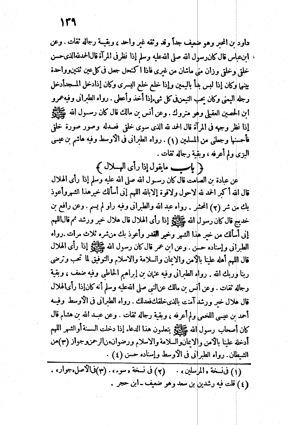 17146 - عَنْ عُبَادَةَ بْنِ الصَّامِتِ قَالَ: «كَانَ رَسُولُ اللَّهِ - صَلَّى اللَّهُ عَلَيْهِ وَسَلَّمَ - إِذَا رَأَى الْهِلَالَ قَالَ: " اللَّهُ أَكْبَرُ، الْحَمْدُ لِلَّهِ، لَا حَوْلَ وَلَا قُوَّةَ إِلَّا بِاللَّهِ، اللَّهُمَّ إِنِّي أَسْأَلُكَ خَيْرَ هَذَا الشَّهْرِ، وَأَعُوذُ بِكَ مِنْ شَرِّ (الْقَدَرِ وَمِنْ سُوءِ) الْمَحْشَرِ» ".