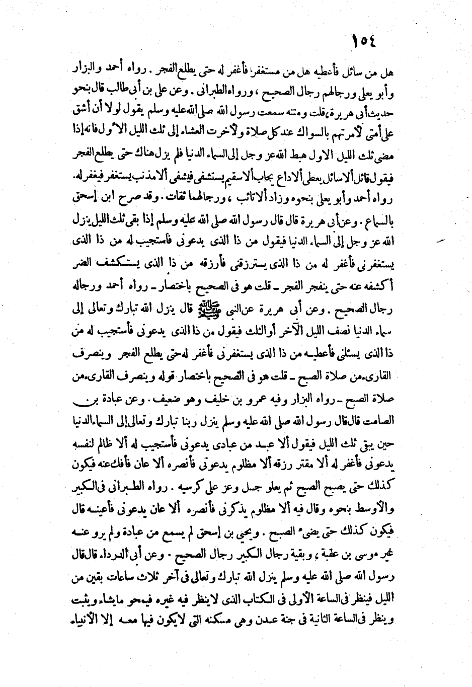 هَلْ مِنْ سَائِلٍ فَأُعْطِيَهُ؟ هَلْ مِنْ مُسْتَغْفِرٍ فَأَغْفِرَ لَهُ؟ حَتَّى يَطْلُعَ الْفَجْرُ» ".