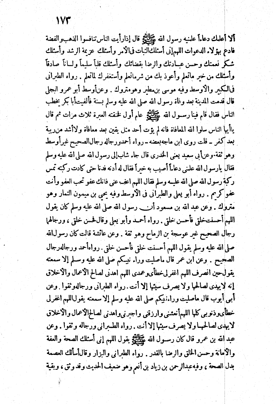 17367 - وَعَنْ عَبْدِ اللَّهِ بْنِ عَمْرٍو قَالَ: «كَانَ رَسُولُ اللَّهِ - صَلَّى اللَّهُ عَلَيْهِ وَسَلَّمَ - يَقُولُ: " اللَّهُمَّ إِنِّي أَسْأَلُكَ الصِّحَّةَ، وَالْعِفَّةَ، وَالْأَمَانَةَ، وَحُسْنَ الْخُلُقِ، وَالرِّضَا بِالْقَدَرِ» ".