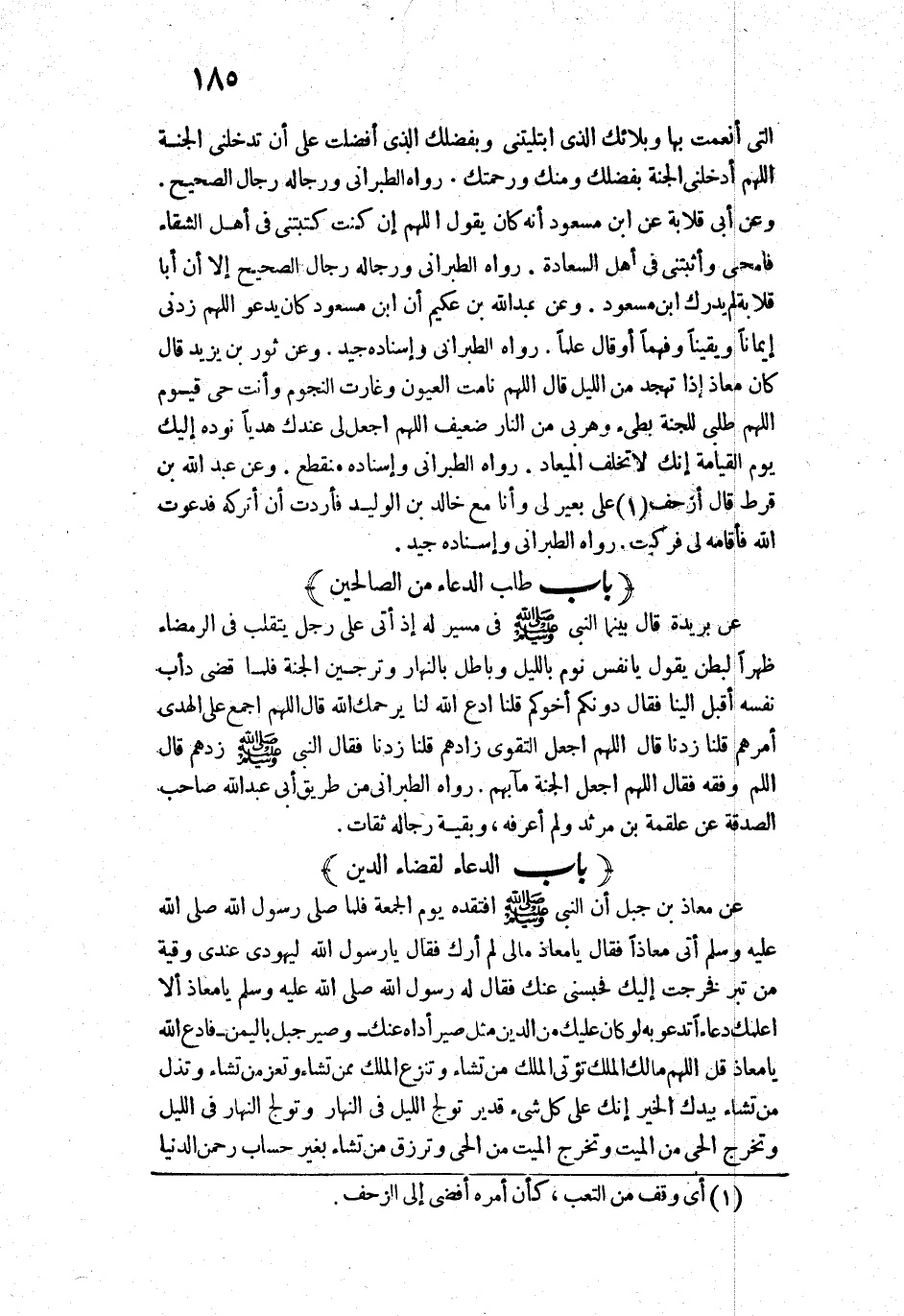 17440 - عَنْ بُرَيْدَةَ قَالَ: «بَيْنَمَا النَّبِيُّ - صَلَّى اللَّهُ عَلَيْهِ وَسَلَّمَ - فِي مَسِيرٍ لَهُ إِذْ أَتَى عَلَى رَجُلٍ يَتَقَلَّبُ فِي الرَّمْضَاءِ ظُهْرًا لِبَطْنٍ يَقُولُ: يَا نَفْسُ نَوْمٌ بِاللَّيْلِ، وَبَاطِلٌ بِالنَّهَارِ، وَتَرْجِينَ الْجَنَّةَ؟ فَلَمَّا قَضَى دَأْبَ نَفْسِهِ أَقْبَلَ إِلَيْنَا فَقَالَ: " دُونَكُمْ أَخُوكُمْ "، قُلْنَا: ادْعُ اللَّهَ لَنَا - يَرْحَمُكَ اللَّهُ - قَالَ: اللَّهُمَّ اجْمَعْ عَلَى الْهُدَى أَمْرَهُمْ، قُلْنَا: زِدْنَا، قَالَ: اللَّهُمَّ اجْعَلِ التَّقْوَى زَادَهُمْ، قُلْنَا: زِدْنَا، فَقَالَ النَّبِيُّ - صَلَّى اللَّهُ عَلَيْهِ وَسَلَّمَ: " زِدْهُمْ "، قَالَ: " اللَّهُمَّ وَفِّقْهُ "، فَقَالَ: اللَّهُمَّ اجْعَلِ الْجَنَّةَ مَآبَهُمْ».