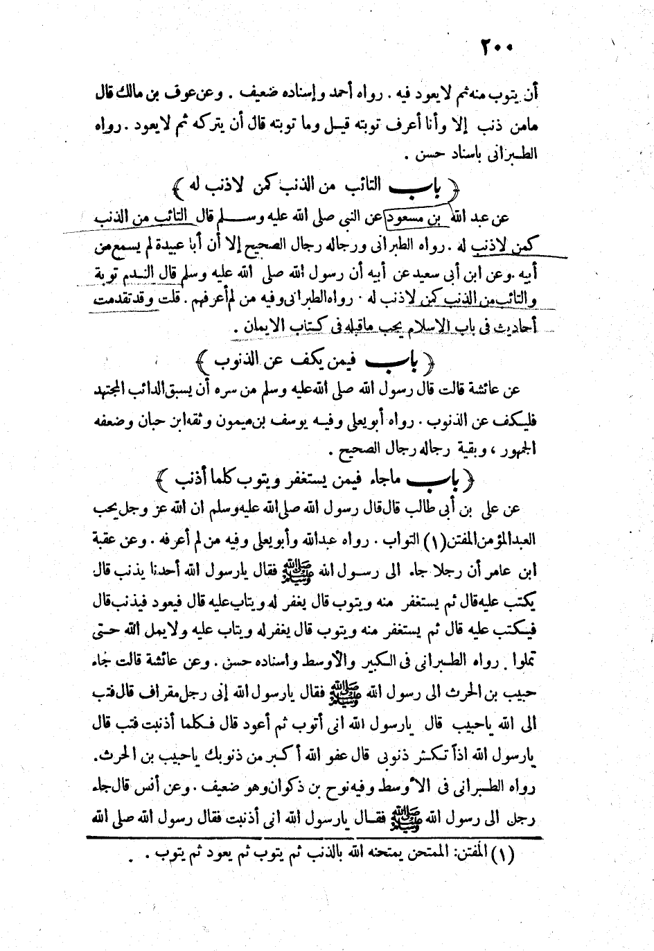 رَوَاهُ الطَّبَرَانِيُّ، وَفِيهِ مَنْ لَمْ أَعْرِفْهُمْ. قُلْتُ: وَقَدْ تَقَدَّمَتْ أَحَادِيثُ فِي بَابِ "الْإِسْلَامِ يَجُبُّ مَا كَانَ قَبْلَهُ " فِي كِتَابِ الْإِيمَانِ.