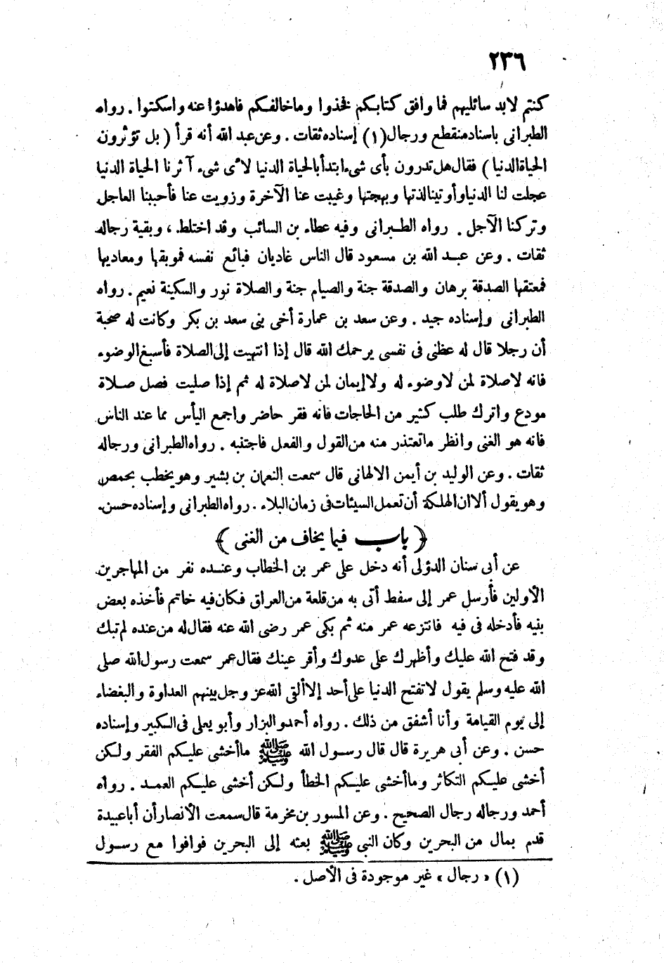 رَوَاهُ الطَّبَرَانِيُّ بِإِسْنَادٍ مُنْقَطِعٍ، وَرِجَالُ إِسْنَادِهِ ثِقَاتٌ.