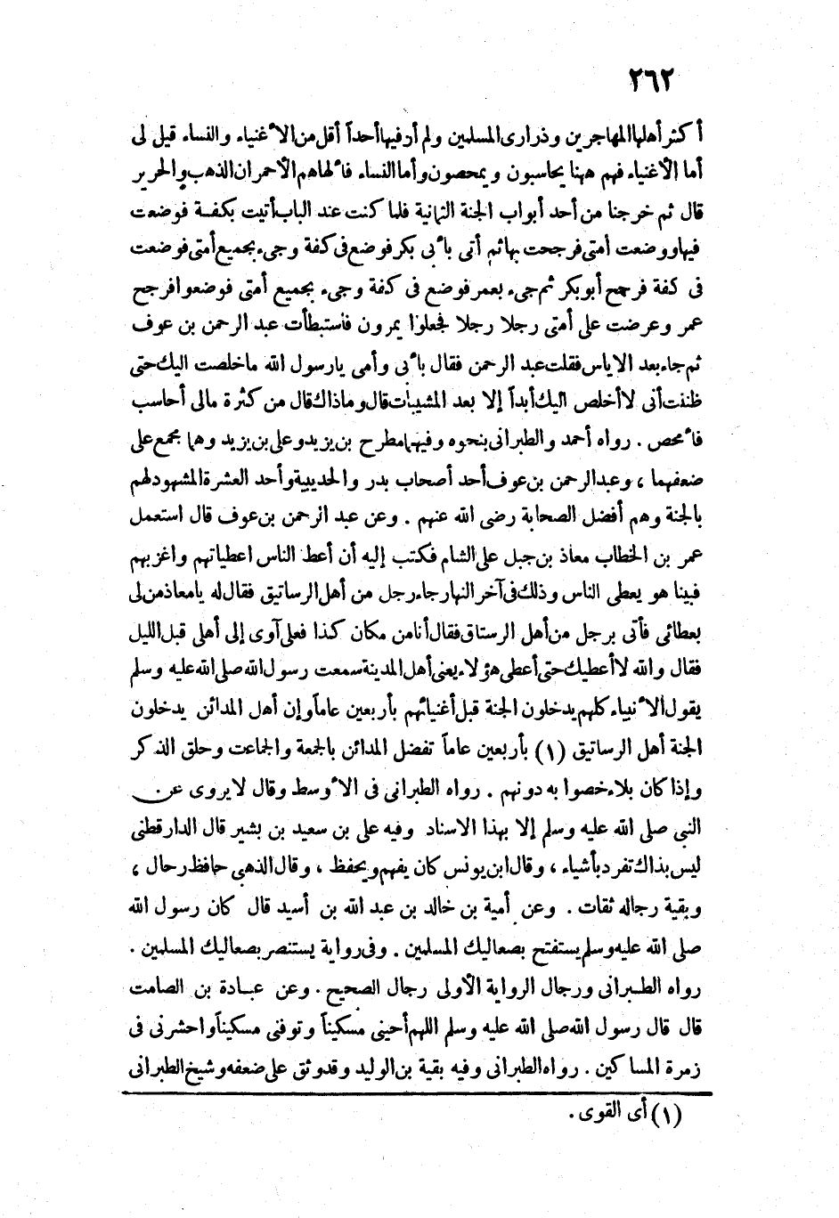 رَوَاهُ أَحْمَدُ، وَالطَّبَرَانِيُّ بِنَحْوِهِ، وَفِيهِمَا مُطَرِّحُ بْنُ يَزِيدَ، وَعَلِيُّ بْنُ يَزِيدَ، وَهُمَا مُجْمَعٌ عَلَى ضَعْفِهِمَا، وَعَبْدُ الرَّحْمَنِ بْنُ عَوْفٍ أَحَدُ أَصْحَابِ بَدْرٍ وَالْحُدَيْبِيَةِ، وَأَحَدُ الْعَشَرَةِ الْمَشْهُودِ لَهُمْ بِالْجَنَّةِ، وَهُمْ مِنْ أَفْضَلِ الصَّحَابَةِ - رَضِيَ اللَّهُ عَنْهُمْ.