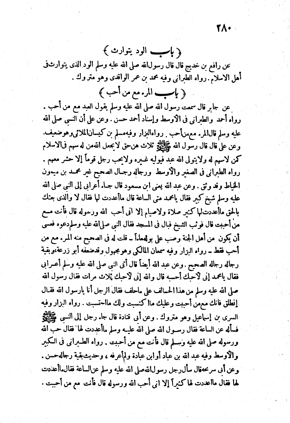 18018 - عَنْ رَافِعِ بْنِ خَدِيجٍ قَالَ: قَالَ رَسُولُ اللَّهِ - صَلَّى اللَّهُ عَلَيْهِ وَسَلَّمَ -: " «الْوُدُّ الَّذِي يُتَوَارَثُ فِي أَهْلِ الْإِسْلَامِ» ".