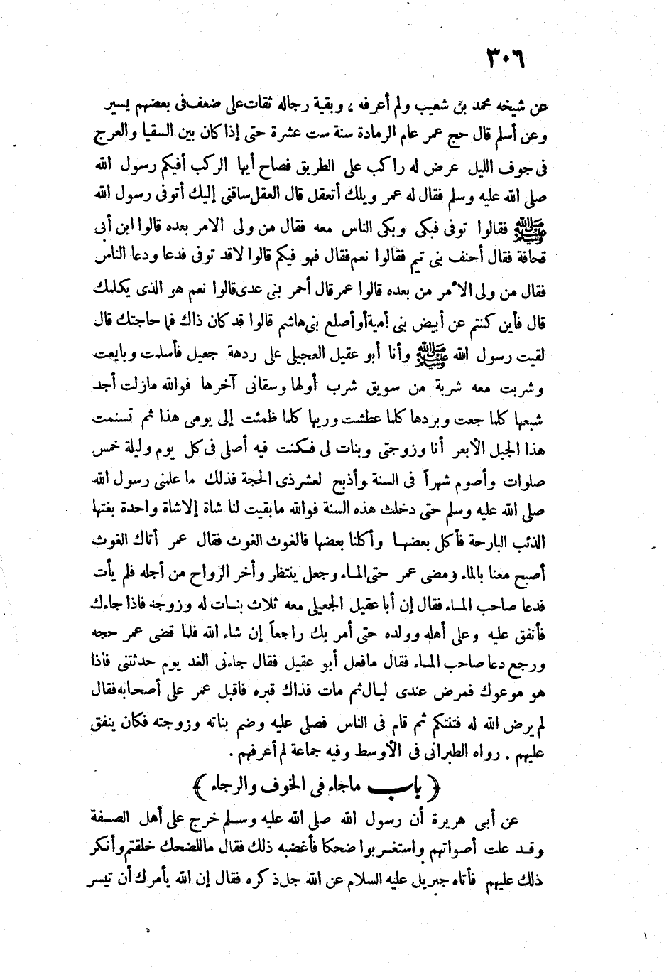 18194 - وَعَنْ أَسْلَمَ قَالَ: حَجَّ عُمَرُ عَامَ الرَّمَادَةِ سَنَةَ سِتَّ عَشْرَةَ، حَتَّى إِذَا كَانَ بَيْنَ السُّقْيَا وَالْعَرَجِ فِي جَوْفِ اللَّيْلِ عَرَضَ لَهُ رَاكِبٌ عَلَى الطَّرِيقِ فَصَاحَ: أَيُّهَا الرَّكْبُ، أَفِيكُمُ رَسُولُ اللَّهِ - صَلَّى اللَّهُ عَلَيْهِ وَسَلَّمَ -؟ فَقَالَ لَهُ عُمَرُ: وَيْلَكَ، أَتَعْقِلُ؟! قَالَ: الْعَقْلُ سَاقَنِي إِلَيْكَ، أَتُوُفِّيَ رَسُولُ اللَّهِ - صَلَّى اللَّهُ عَلَيْهِ وَسَلَّمَ -؟ فَقَالُوا: تُوُفِّيَ، فَبَكَى وَبَكَى النَّاسُ مَعَهُ. فَقَالَ: مَنْ وَلِيَ الْأَمْرَ بَعْدَهُ؟ قَالُوا: ابْنُ أَبِي قُحَافَةَ، فَقَالَ: أَحْنَفُ بَنِي تَمِيمٍ؟ فَقَالُوا: نَعَمْ. فَقَالَ: فَهُوَ فِيكُمْ؟ قَالُوا: لَا. قَدْ تُوُفِّيَ، فَدَعَا، وَدَعَا النَّاسُ. فَقَالَ: مَنْ وَلِيَ الْأَمْرَ مِنْ بَعْدِهِ، قَالُوا: عُمَرُ. قَالَ: أَحْمَرُ بَنِي عَدِيٍّ؟ قَالُوا: نَعَمْ. هُوَ الَّذِي يُكَلِّمُكَ، فَقَالَ: فَأَيْنَ كُنْتُمْ عَنْ أَبْيَضِ بَنِي أُمَيَّةَ، أَوْ أَصْلَعِ بَنِي هَاشِمٍ؟ قَالُوا: قَدْ كَانَ ذَاكَ فَمَا حَاجَتُكَ؟ قَالَ: «لَقِيتُ رَسُولَ اللَّهِ - صَلَّى اللَّهُ عَلَيْهِ وَسَلَّمَ - وَأَنَا أَبُو عُقَيْلٍ الْجُعَيْلِيُّ عَلَى رَدْهَةِ جُعَيْلٍ، فَأَسْلَمْتُ، وَبَايَعْتُ، وَشَرِبْتُ مَعَهُ شَرْبَةً مِنْ سَوِيقٍ، شَرِبَ أَوَّلَهَا، وَسَقَانِي آخِرَهَا»، فَوَاللَّهِ، مَا زِلْتُ أَجِدُ شِبَعَهَا كُلَّمَا جُعْتُ، وَبَرْدَهَا كُلَّمَا عَطِشْتُ، وَرِيَّهَا كُلَّمَا ظَمِئْتُ إِلَى يَوْمِي هَذَا، ثُمَّ تَسَنَّمْتُ هَذَا الْجَبَلَ الْأَبْعَرَ أَنَا وَزَوْجَتِي وَبَنَاتٌ لِي، فَكُنْتُ فِيهِ أُصَلِّي كُلَّ يَوْمٍ وَلَيْلَةٍ خَمْسَ صَلَوَاتٍ، وَأَصُومُ شَهْرًا فِي السَّنَةِ، وَأَذْبَحُ لِعَشْرِ ذِي الْحِجَّةِ، فَذَلِكَ مَا عَلَّمَنِي رَسُولُ اللَّهِ - صَلَّى اللَّهُ عَلَيْهِ وَسَلَّمَ - حَتَّى دَخَلَتْ هَذِهِ السَّنَةُ، فَوَاللَّهِ، مَا بَقِيَتْ لَنَا شَاةٌ إِلَّا شَاةٌ وَاحِدَةٌ، بَغَتَهَا الذِّئْبُ الْبَارِحَةَ ; فَأَكَلَ بَعْضَهَا وَأَكَلْنَا بَعْضَهَا، فَالْغَوْثَ الْغَوْثَ! فَقَالَ عُمَرُ: أَتَاكَ الْغَوْثُ، أَصْبِحْ مَعَنَا بِالْمَاءِ. وَمَضَى عُمَرُ حَتَّى الْمَاءِ وَجَعَلَ يَنْتَظِرُ، وَأَخَّرَ الرَّوَاحَ مِنْ أَجْلِهِ، فَلَمْ يَأْتِ. فَدَعَا صَاحِبَ الْمَاءِ فَقَالَ: إِنَّ أَبَا عُقَيْلٍ الْجُعَيْلِيَّ مَعَهُ ثَلَاثُ بَنَاتٍ لَهُ وَزَوْجُهُ، فَإِذَا جَاءَكَ فَأَنْفِقْ عَلَيْهِ وَعَلَى أَهْلِهِ وَوَلَدِهِ حَتَّى أَمُرَّ بِكَ رَاجِعًا إِنْ شَاءَ اللَّهُ، فَلَمَّا قَضَى عُمَرُ حَجَّهُ وَرَجَعَ دَعَا صَاحِبَ الْمَاءِ فَقَالَ: مَا فَعَلَ أَبُو عُقَيْلٍ؟ فَقَالَ: جَاءَنِي الْغَدَ يَوْمَ حَدَّثْتَنِي، فَإِذَا هُوَ مَوْعُوكٌ فَمَرِضَ عِنْدِي لَيَالٍ ثُمَّ مَاتَ، فَذَاكَ قَبْرُهُ. فَأَقْبَلَ عُمَرُ عَلَى أَصْحَابِهِ فَقَالَ: لَمْ يَرْضَ اللَّهُ لَهُ فِتْنَتَكُمْ، ثُمَّ قَامَ فِي النَّاسِ فَصَلَّى عَلَيْهِ، وَضَمَّ بَنَاتِهِ وَزَوْجَتَهُ، فَكَانَ يُنْفِقُ عَلَيْهِمْ.