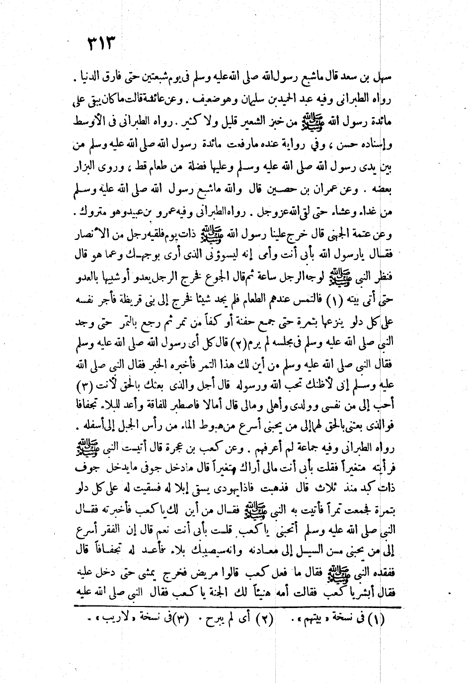 سَهْلِ بْنِ سَعْدٍ قَالَ: «مَا شَبِعَ رَسُولُ اللَّهِ - صَلَّى اللَّهُ عَلَيْهِ وَسَلَّمَ - فِي يَوْمٍ شَبْعَتَيْنِ حَتَّى فَارَقَ الدُّنْيَا».