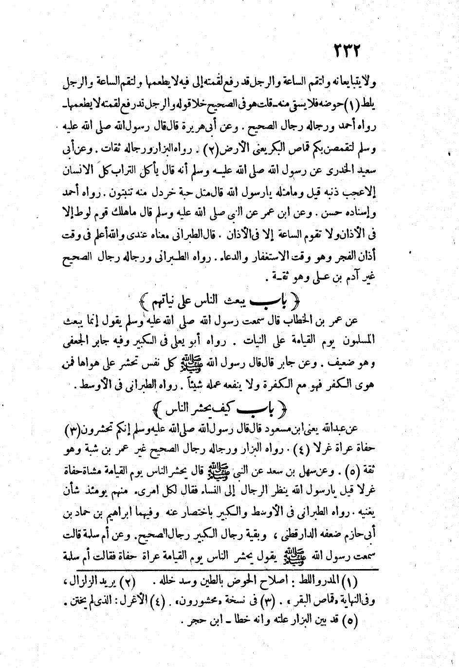 18318 - عَنْ عَبْدِ اللَّهِ - يَعْنِي ابْنَ مَسْعُودٍ - قَالَ: قَالَ رَسُولُ اللَّهِ - صَلَّى اللَّهُ عَلَيْهِ وَسَلَّمَ -: «إِنَّكُمْ تُحْشَرُونَ حُفَاةً، عُرَاةً، غُرْلًا».