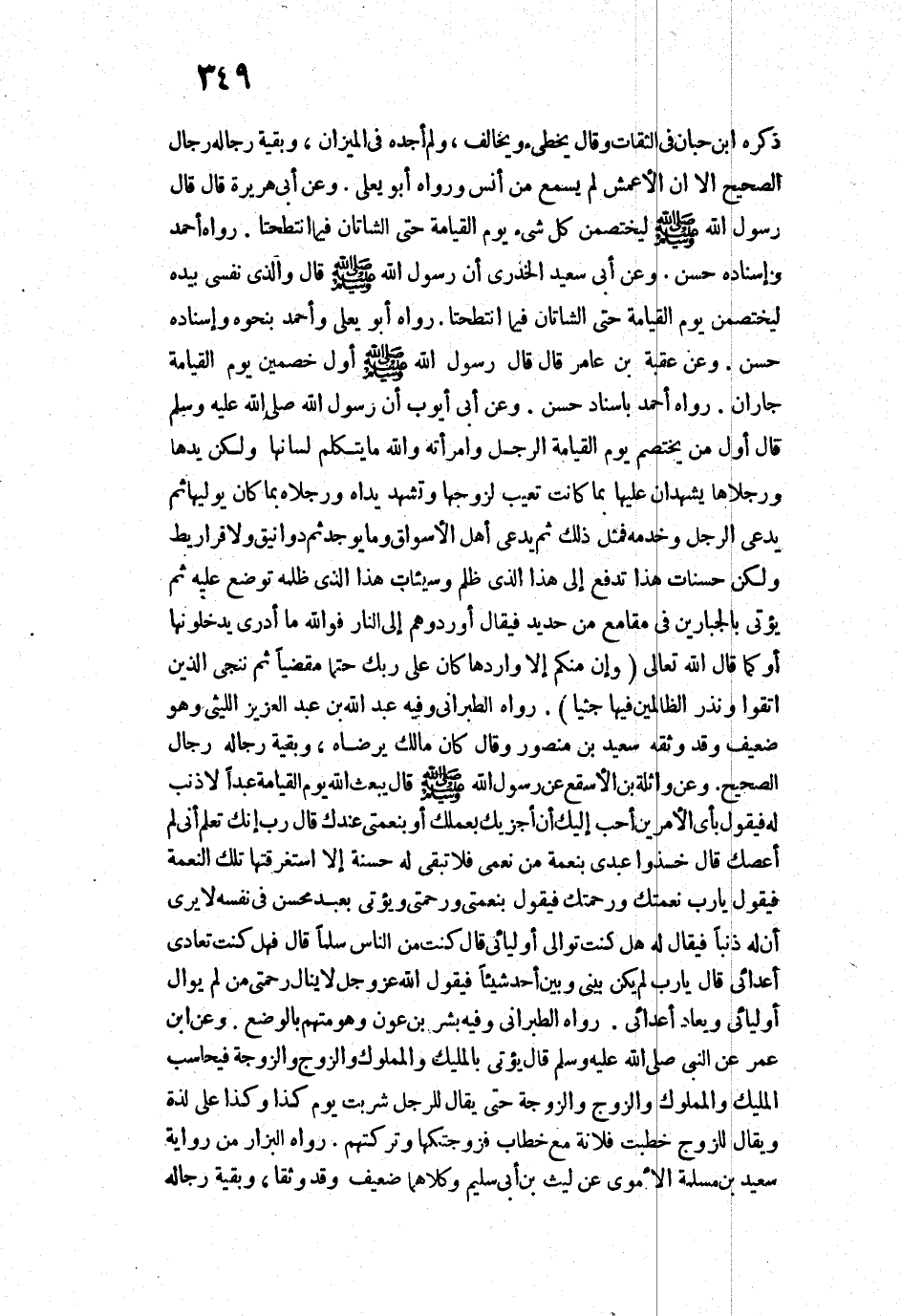 18385 - وَعَنْ أَبِي هُرَيْرَةَ قَالَ: قَالَ رَسُولُ اللَّهِ - صَلَّى اللَّهُ عَلَيْهِ وَسَلَّمَ -: «لَيَخْتَصِمَنَّ كُلُّ شَيْءٍ يَوْمَ الْقِيَامَةِ حَتَّى الشَّاتَانِ فِيمَا انْتَطَحَتَا».