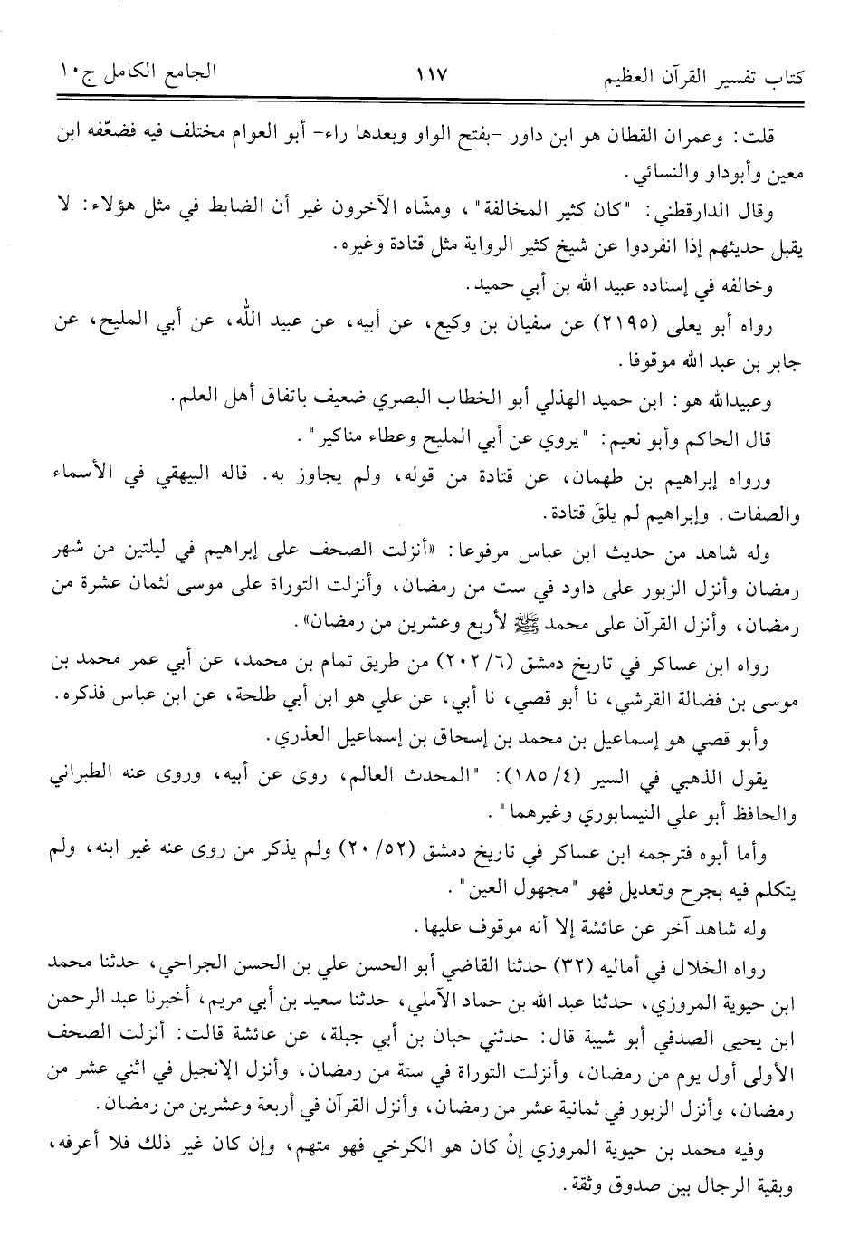رواه الخلال في أماليه (٣٢) حدّثنا القاضي أبو الحسن علي بن الحسن الجراحي، حدّثنا محمد ابن حيوية المروزي، حدّثنا عبد اللَّه بن حماد الآملي، حدّثنا سعيد بن أبي مريم، أخبرنا عبد الرحمن ابن يحيى الصدفي أبو شيبة قال: حدثني حبان بن أبي جبلة، عن عائشة قالت: أنزلت الصحف الأولى أول يوم من رمضان، وأنزلت التوراة في ستة من رمضان، وأنزل الإنجيل في اثني عشر من رمضان، وأنزل الزبور في ثمانية عشر من رمضان، وأنزل القرآن في أربعة وعشرين من رمضان.