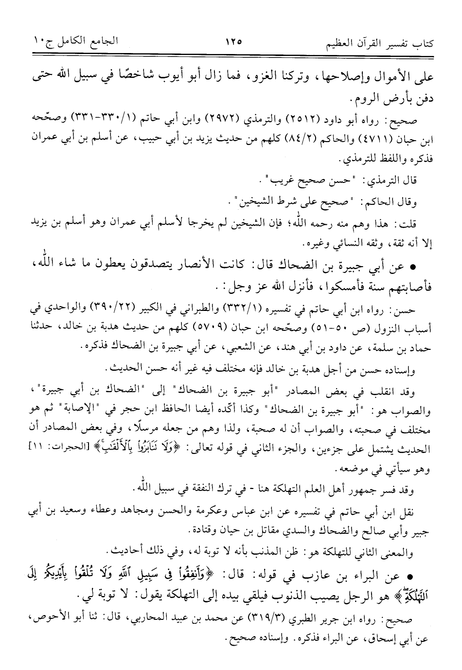 حسن: رواه ابن أبي حاتم في تفسيره (١/ ٣٣٢) والطبراني في الكبير (٢٢/ ٣٩٠) والواحدي في أسباب النزول (ص ٥٠ - ٥١) وصحّحه ابن حبان (٥٧٠٩) كلهم من حديث هدبة بن خالد، حدّثنا حماد بن سلمة، عن داود بن أبي هند، عن الشعبي، عن أبي جبيرة بن الضحاك فذكره.