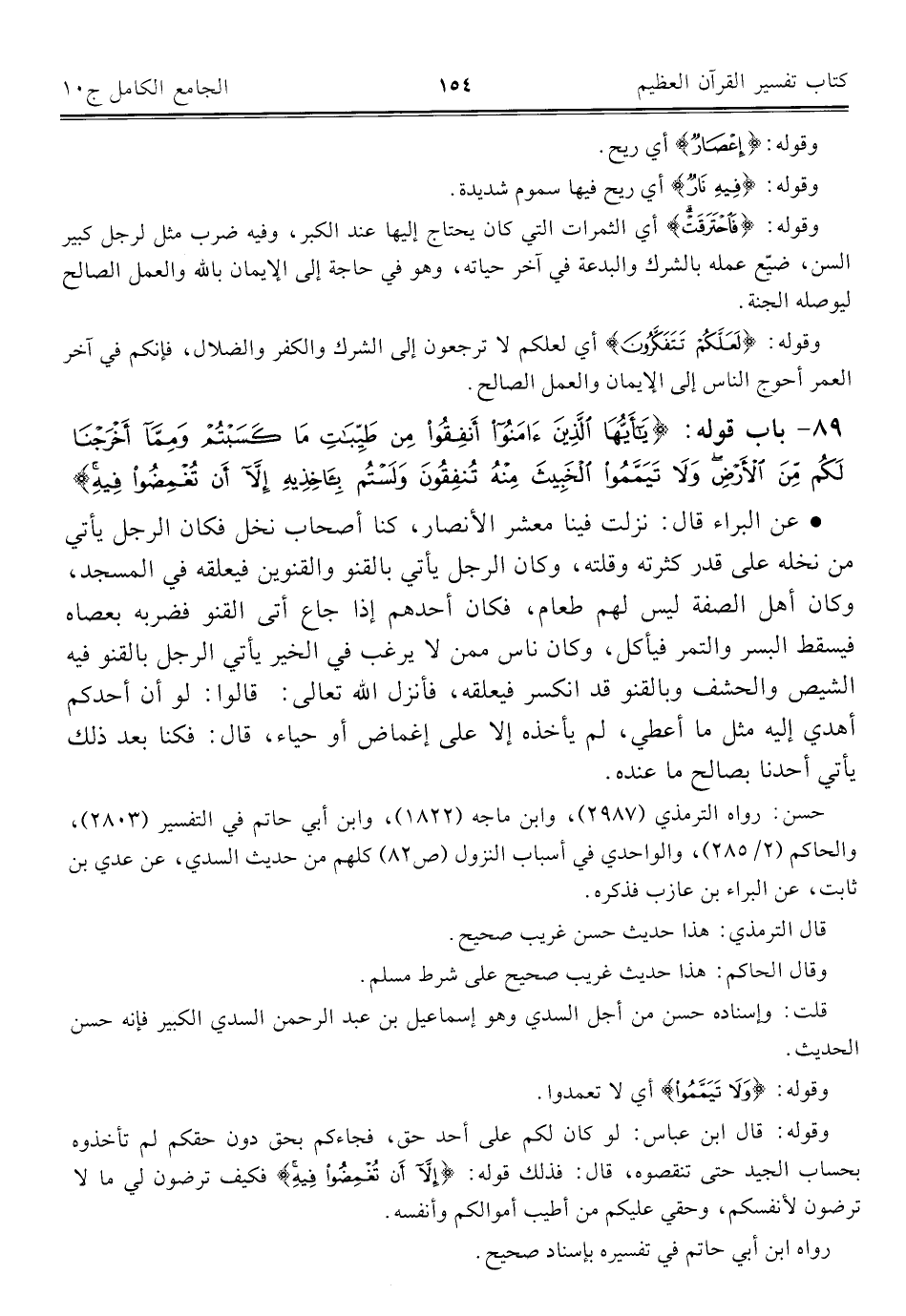 حسن: رواه الترمذيّ (٢٩٨٧)، وابن ماجه (١٨٢٢)، وابن أبي حاتم في التفسير (٢٨٠٣)، والحاكم (٢/ ٢٨٥)، والواحدي في أسباب النزول (ص ٨٢) كلهم من حديث السدي، عن عدي بن ثابت، عن البراء بن عازب فذكره.