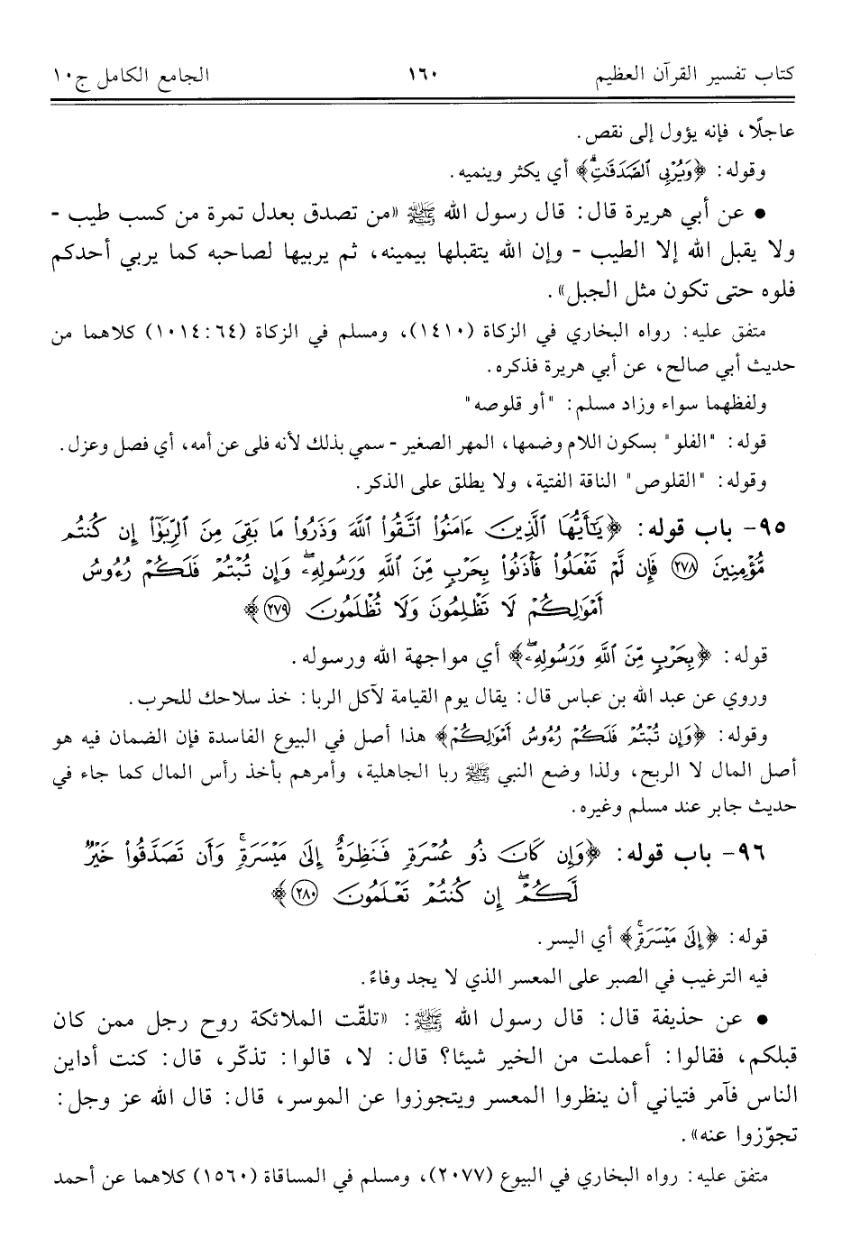 ٩٥ - باب قوله: {يَاأَيُّهَا الَّذِينَ آمَنُوا اتَّقُوا اللَّهَ وَذَرُوا مَا بَقِيَ مِنَ الرِّبَا إِنْ كُنْتُمْ مُؤْمِنِينَ (٢٧٨) فَإِنْ لَمْ تَفْعَلُوا فَأْذَنُوا بِحَرْبٍ مِنَ اللَّهِ وَرَسُولِهِ وَإِنْ تُبْتُمْ فَلَكُمْ رُءُوسُ أَمْوَالِكُمْ لَا تَظْلِمُونَ وَلَا تُظْلَمُونَ (٢٧٩)}