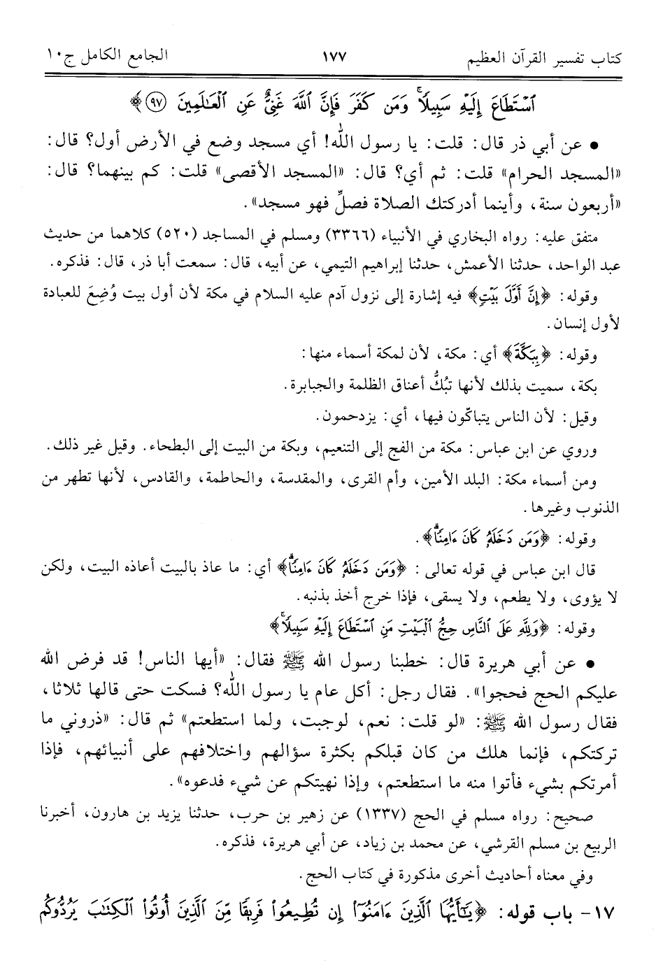 وقوله: {وَلِلَّهِ عَلَى النَّاسِ حِجُّ الْبَيْتِ مَنِ اسْتَطَاعَ إِلَيْهِ سَبِيلًا}