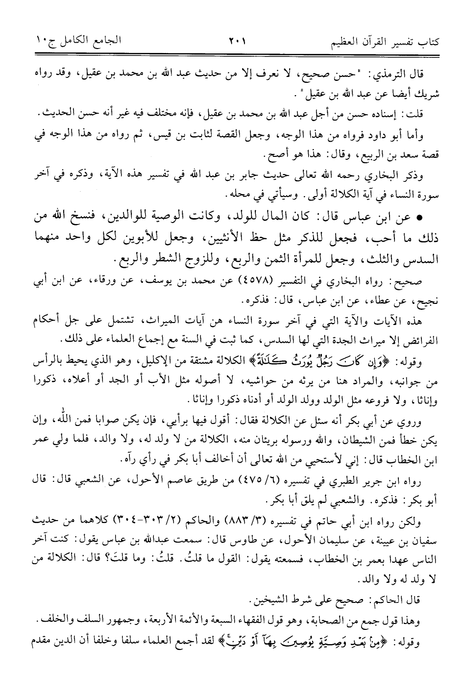 وذكر البخاري رحمه اللَّه تعالى حديث جابر بن عبد اللَّه في تفسير هذه الآية، وذكره في آخر سورة النساء في آية الكلالة أولى. وسيأتي في محله.