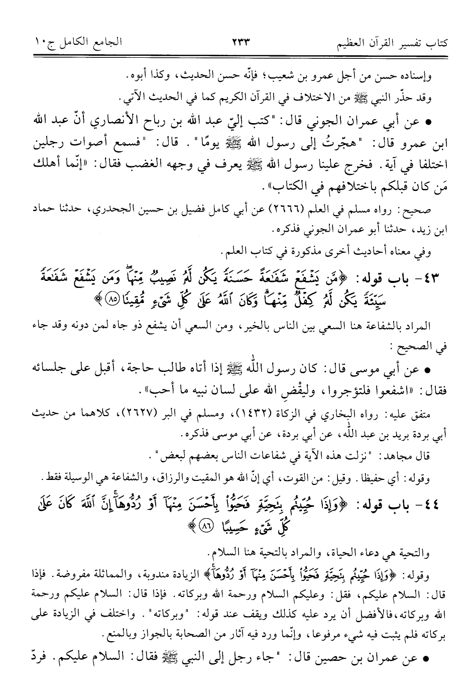٤٣ - باب قوله: {مَنْ يَشْفَعْ شَفَاعَةً حَسَنَةً يَكُنْ لَهُ نَصِيبٌ مِنْهَا وَمَنْ يَشْفَعْ شَفَاعَةً سَيِّئَةً يَكُنْ لَهُ كِفْلٌ مِنْهَا وَكَانَ اللَّهُ عَلَى كُلِّ شَيْءٍ مُقِيتًا (٨٥)}
