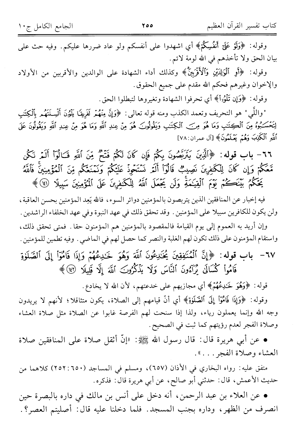 ٦٧ - باب قوله: {إِنَّ الْمُنَافِقِينَ يُخَادِعُونَ اللَّهَ وَهُوَ خَادِعُهُمْ وَإِذَا قَامُوا إِلَى الصَّلَاةِ قَامُوا كُسَالَى يُرَاءُونَ النَّاسَ وَلَا يَذْكُرُونَ اللَّهَ إِلَّا قَلِيلًا (١٤٢)}