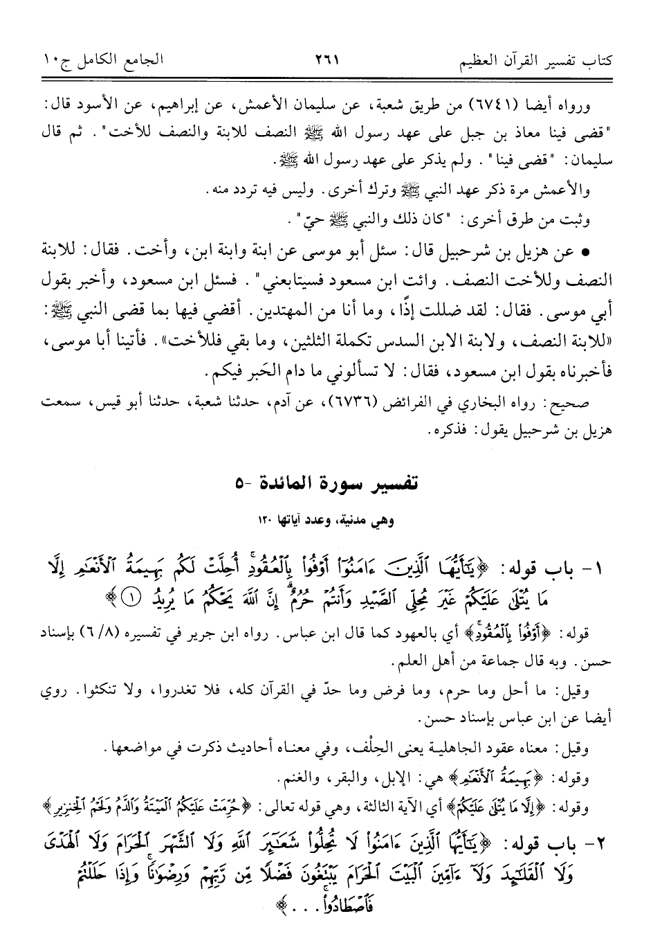 ٥ - تفسير سورة المائدة وهي مدنية، وعدد آياتها ١٢٠