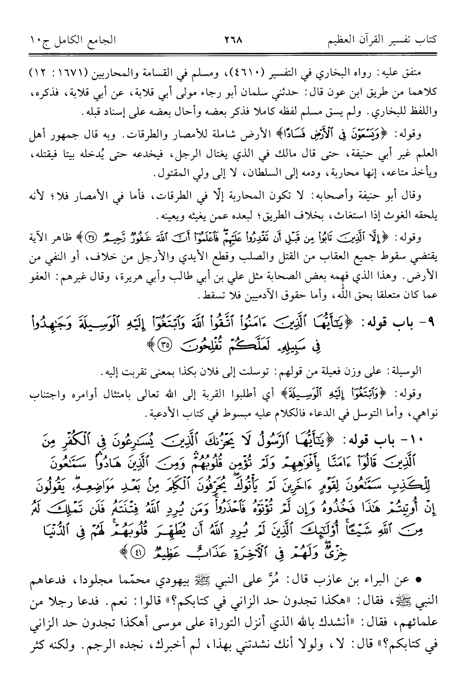 كتاب الجامع الكامل في الحديث الصحيح الشامل المرتب على أبواب الفقه (اسم الجزء: 10)