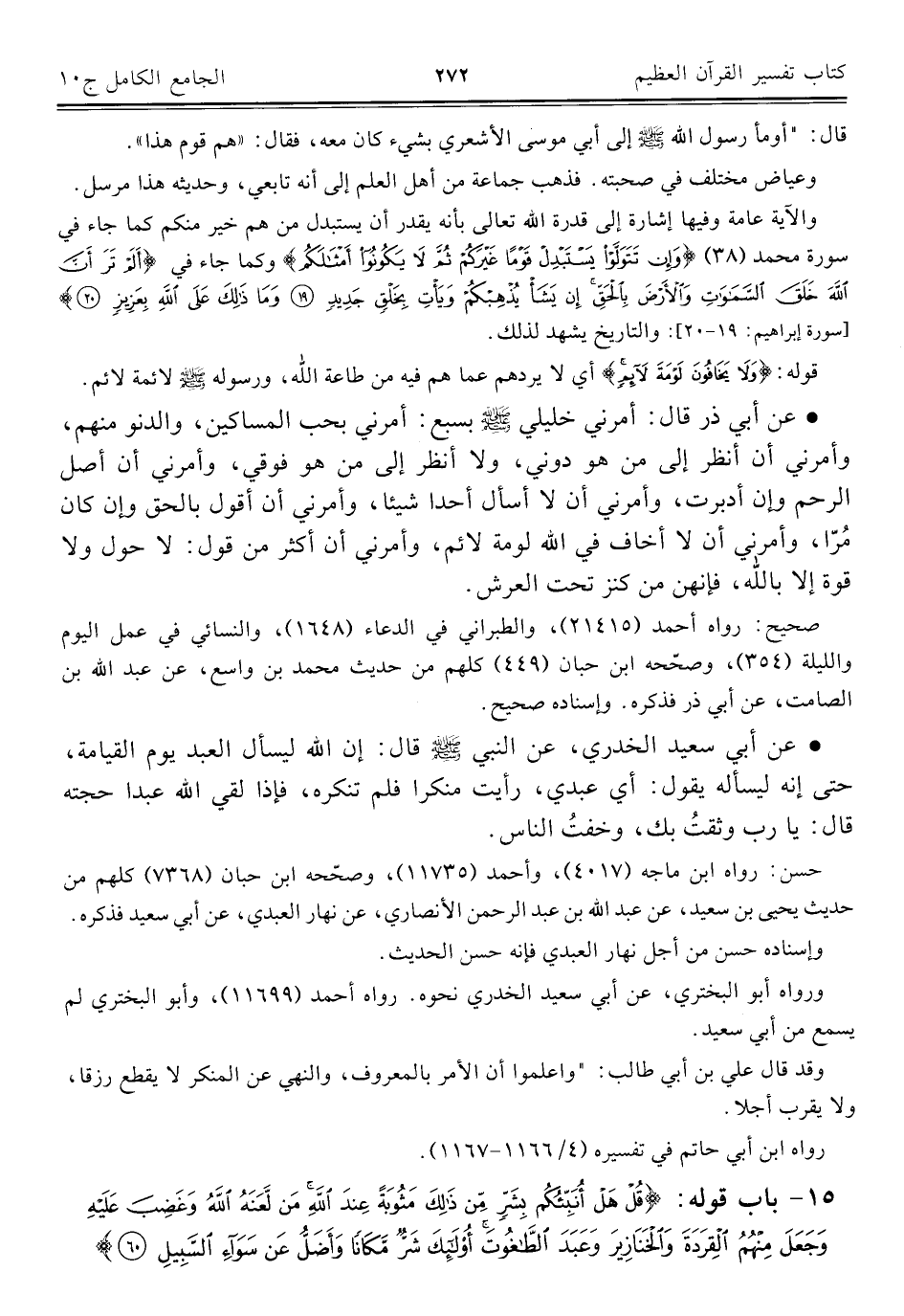 كتاب الجامع الكامل في الحديث الصحيح الشامل المرتب على أبواب الفقه (اسم الجزء: 10)