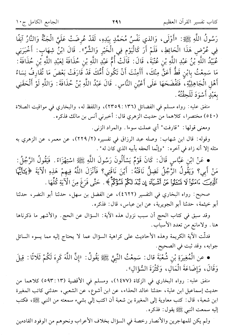 • عَنْ ابْنِ عَبَّاسٍ قَالَ: كَانَ قَوْمٌ يَسْأَلُونَ رَسُولَ اللَّهِ -صلى اللَّه عليه وسلم- اسْتِهْزَاءً. فَيَقُولُ الرَّجُلُ: مَنْ أَبِي؟ وَيَقُولُ الرَّجُلُ تَضِلُّ نَاقَتُهُ: أَيْنَ نَاقَتِي؟ فَأَنْزَلَ اللَّهُ فِيهِمْ هَذِهِ الْآيَةَ {يَاأَيُّهَا الَّذِينَ آمَنُوا لَا تَسْأَلُوا عَنْ أَشْيَاءَ إِنْ تُبْدَ لَكُمْ تَسُؤْكُمْ}. حَتَّى فَرَغَ مِنَ الْآيَةَ كُلِّهَا.