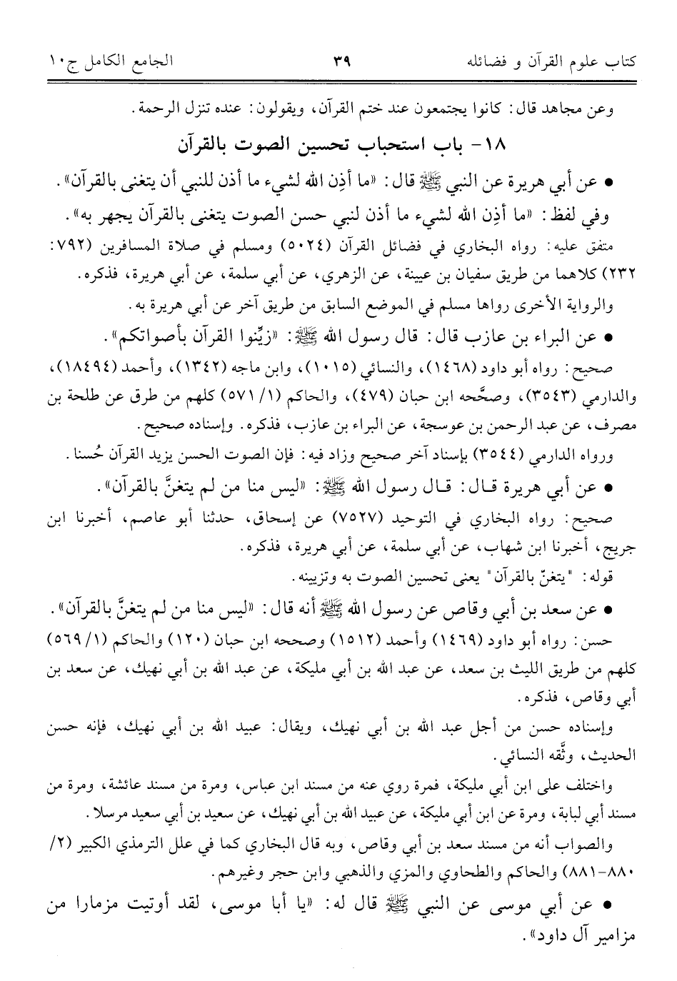 كتاب الجامع الكامل في الحديث الصحيح الشامل المرتب على أبواب الفقه (اسم الجزء: 10)