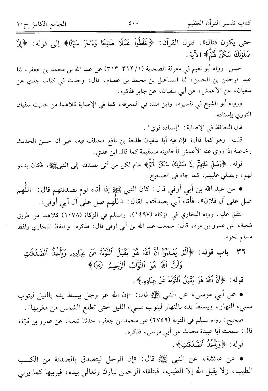 حتى يكون قتال". فنزل القرآن: {خَلَطُوا عَمَلًا صَالِحًا وَآخَرَ سَيِّئًا} إلى قوله: {إِنَّ صَلَاتَكَ سَكَنٌ لَهُمْ} الآية.