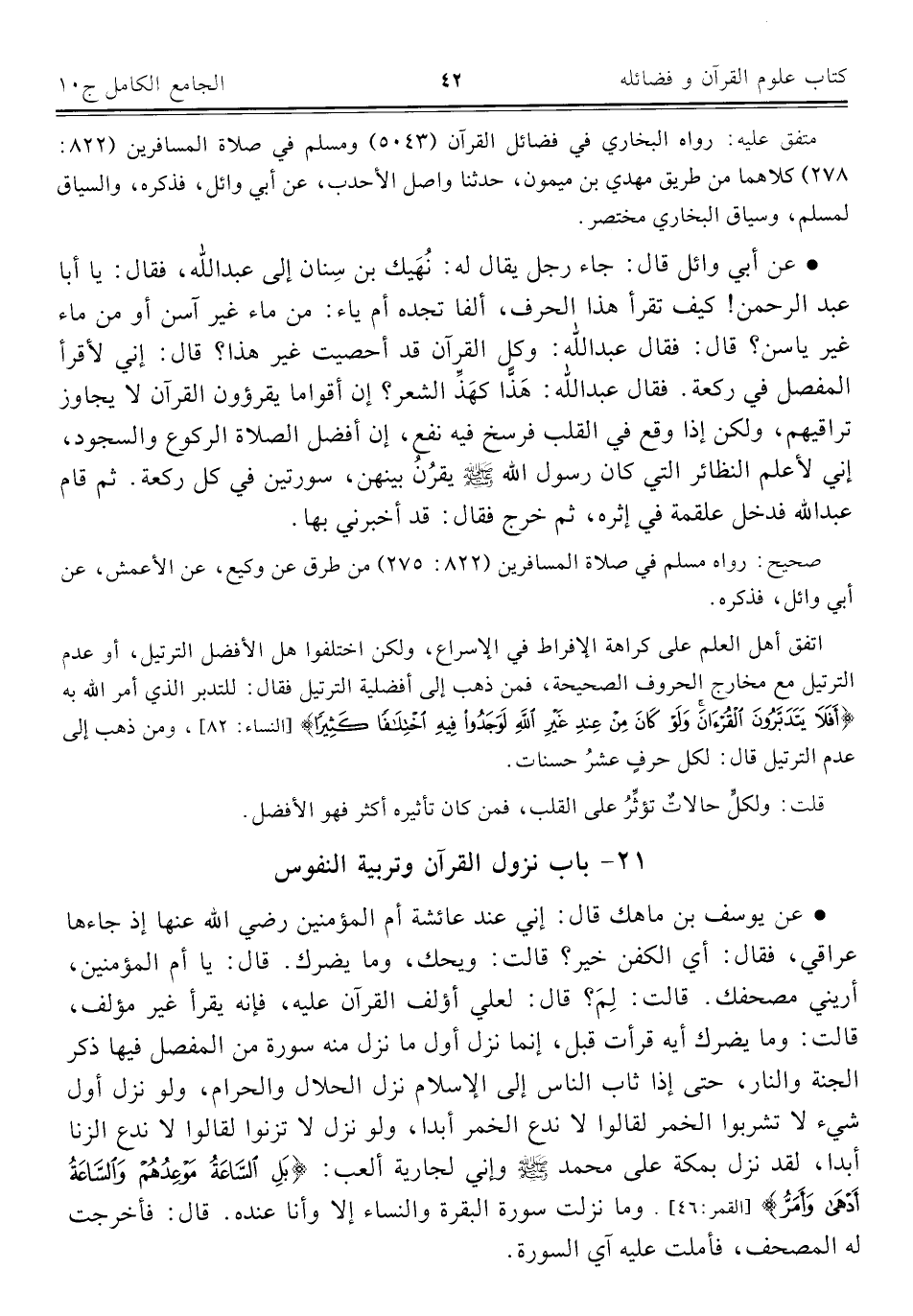كتاب الجامع الكامل في الحديث الصحيح الشامل المرتب على أبواب الفقه (اسم الجزء: 10)