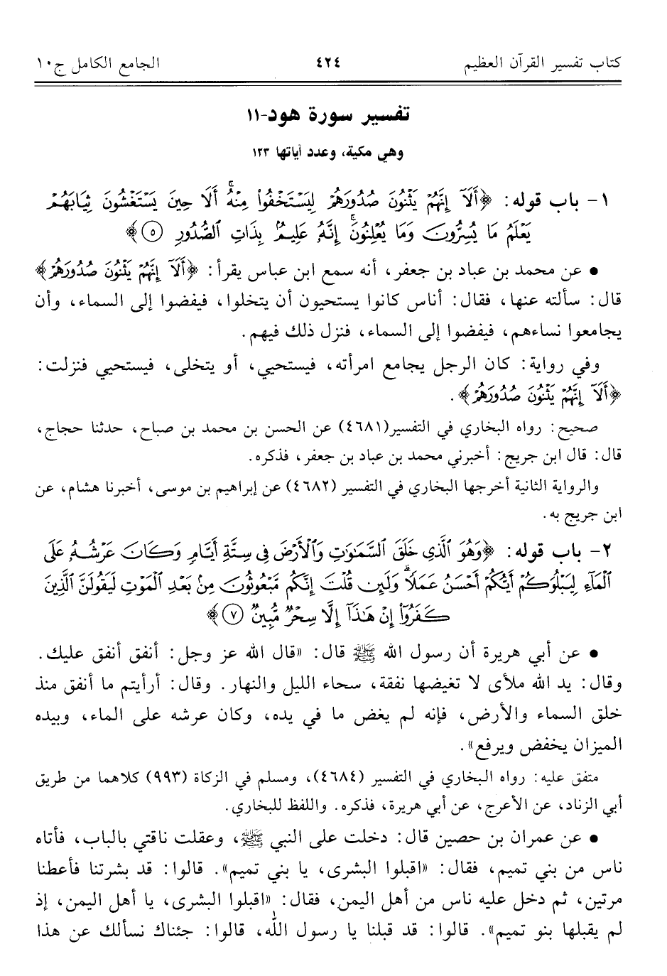١١ - تفسير سورة هود وهي مكية، وعدد آياتها ١٣٣