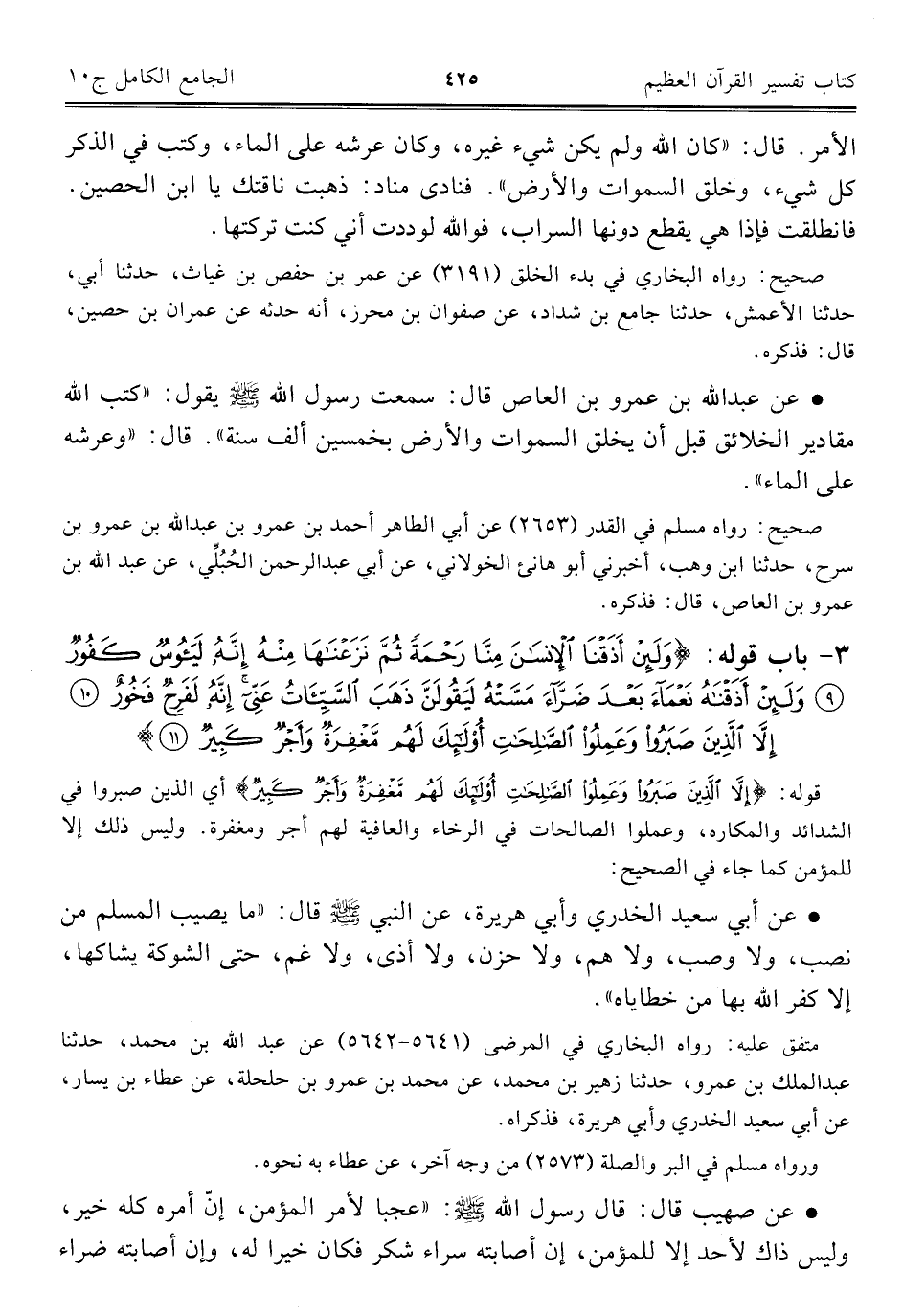 ٣ - باب قوِله: {وَلَئِنْ أَذَقْنَا الْإِنْسَانَ مِنَّا رَحْمَةً ثُمَّ نَزَعْنَاهَا مِنْهُ إِنَّهُ لَيَئُوسٌ كَفُورٌ (٩) وَلَئِنْ أَذَقْنَاهُ نَعْمَاءَ بَعْدَ ضَرَّاءَ مَسَّتْهُ لَيَقُولَنَّ ذَهَبَ السَّيِّئَاتُ عَنِّي إِنَّهُ لَفَرِحٌ فَخُورٌ (١٠) إِلَّا الَّذِينَ صَبَرُوا وَعَمِلُوا الصَّالِحَاتِ أُولَئِكَ لَهُمْ مَغْفِرَةٌ وَأَجْرٌ كَبِيرٌ (١١)}