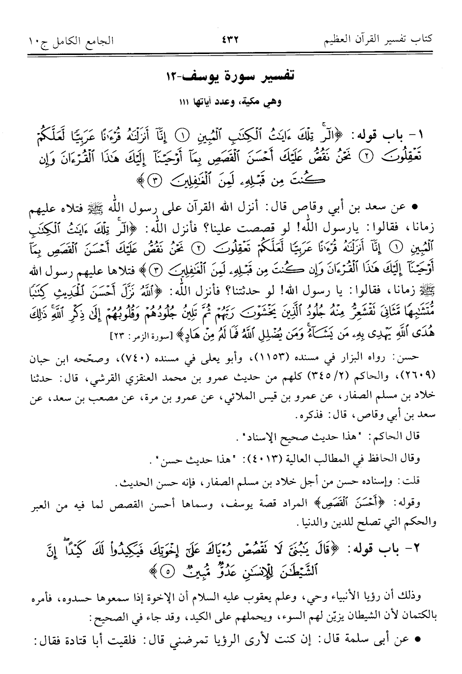 ١٢ - تفسير سورة يوسف وهي مكية، وعدد آياتها ١١١
