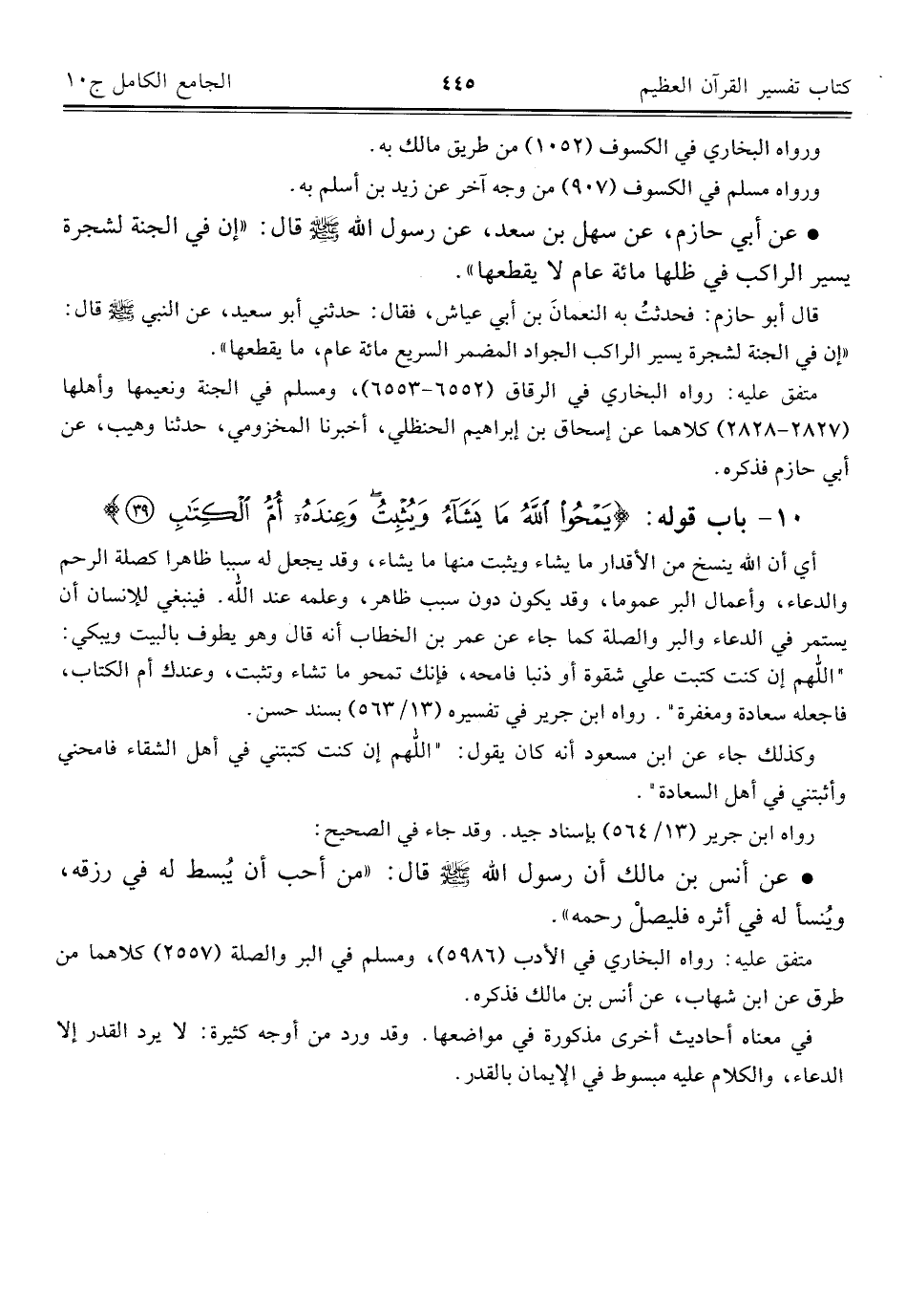 ١٠ - باب قوله: {يَمْحُو اللَّهُ مَا يَشَاءُ وَيُثْبِتُ وَعِنْدَهُ أُمُّ الْكِتَابِ (٣٩)}