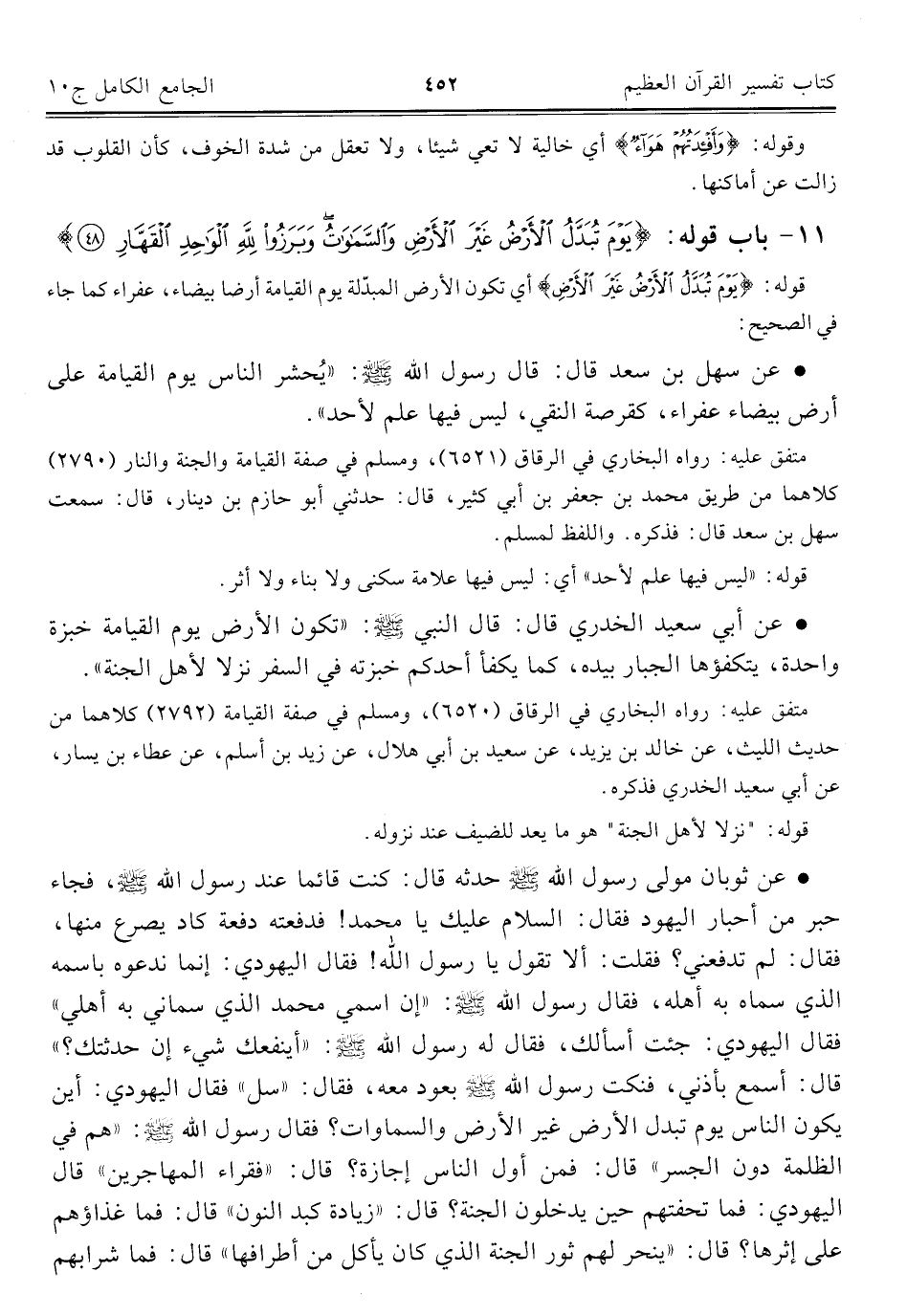 ١١ - باب قوله: {يَوْمَ تُبَدَّلُ الْأَرْضُ غَيْرَ الْأَرْضِ وَالسَّمَاوَاتُ وَبَرَزُوا لِلَّهِ الْوَاحِدِ الْقَهَّارِ (٤٨)}