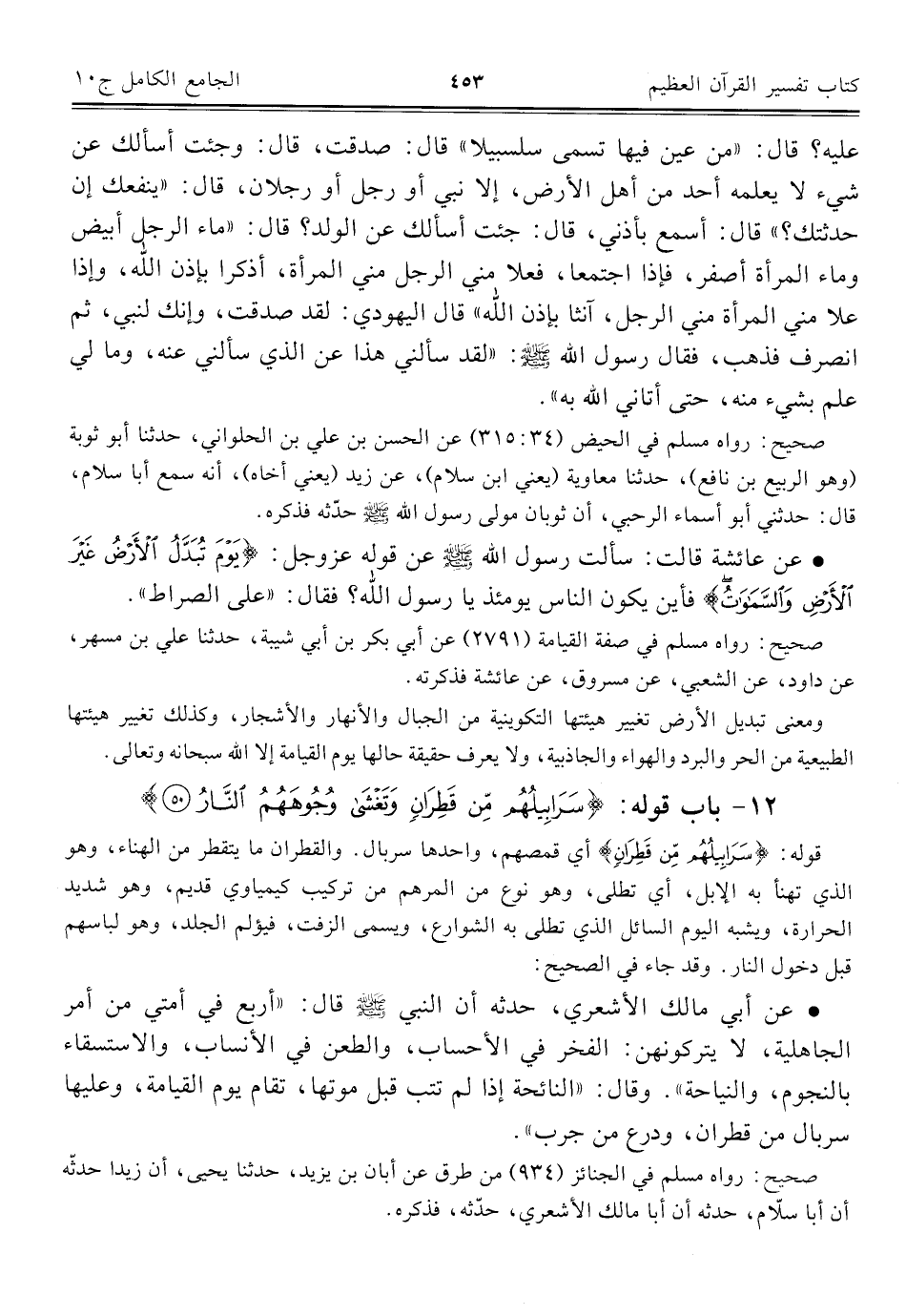 ١٢ - باب قوله: {سَرَابِيلُهُمْ مِنْ قَطِرَانٍ وَتَغْشَى وُجُوهَهُمُ النَّارُ (٥٠)}