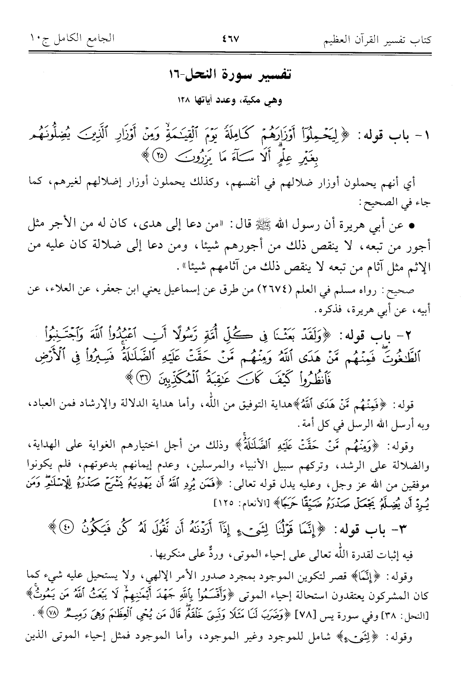 ١٦ - تفسير سورة النحل وهي مكية، وعدد آياتها ١٢٨