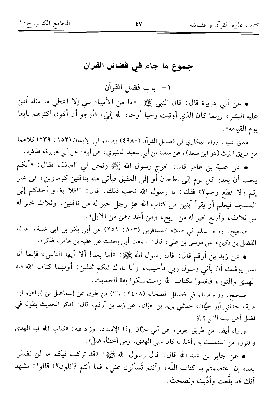 كتاب الجامع الكامل في الحديث الصحيح الشامل المرتب على أبواب الفقه (اسم الجزء: 10)