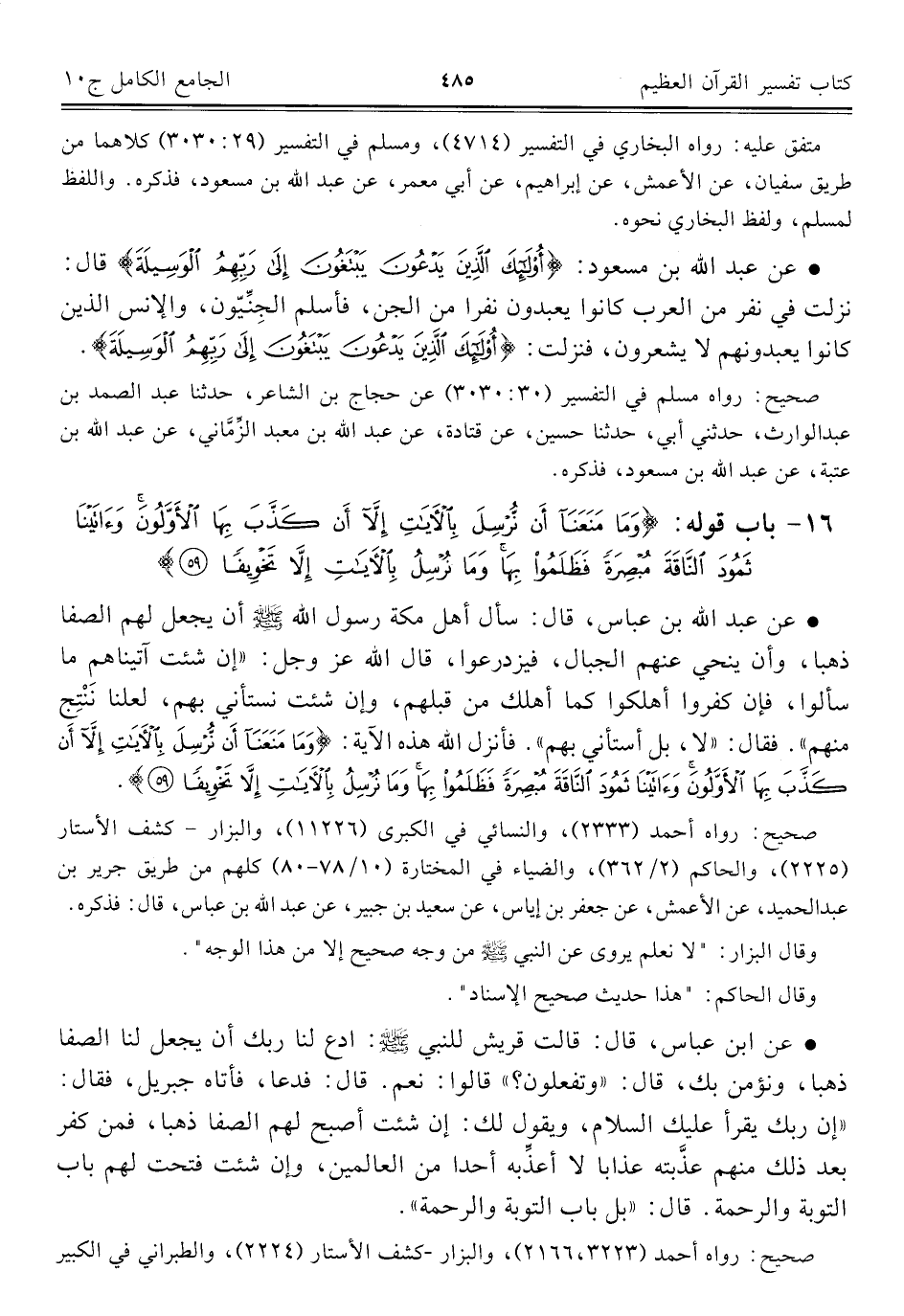 صحيح: رواه مسلم في التفسير (٣٠: ٣٠٣٠) عن حجاج بن الشاعر، حدثنا عبد الصمد بن عبد الوارث، حدثني أبي، حدثنا حسين، عن قتادة، عن عبد الله بن معبد الزِّمَّاني، عن عبد الله بن عتبة، عن عبد الله بن مسعود، فذكره.