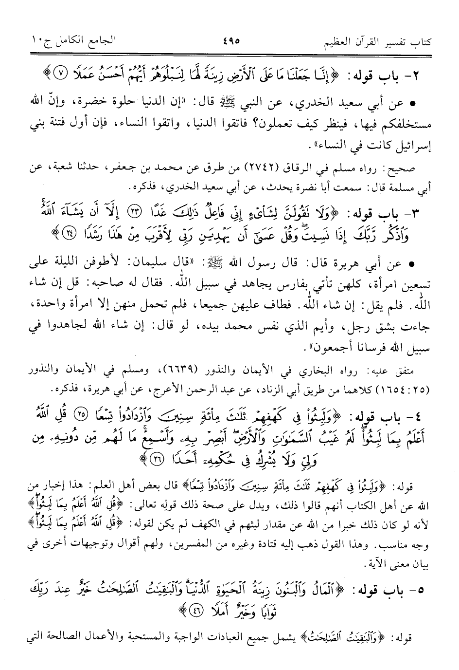 ٥ - باب قوله: {الْمَالُ وَالْبَنُونَ زِينَةُ الْحَيَاةِ الدُّنْيَا وَالْبَاقِيَاتُ الصَّالِحَاتُ خَيْرٌ عِنْدَ رَبِّكَ ثَوَابًا وَخَيْرٌ أَمَلًا (٤٦)}