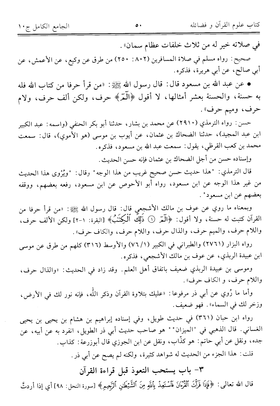 كتاب الجامع الكامل في الحديث الصحيح الشامل المرتب على أبواب الفقه (اسم الجزء: 10)