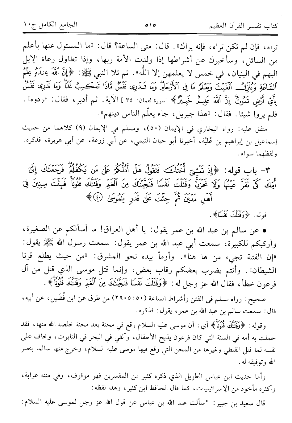 قال سعيد بن جبير: "سألت عبد الله بن عباس عن قول الله عز وجل لموسى عليه السلام: