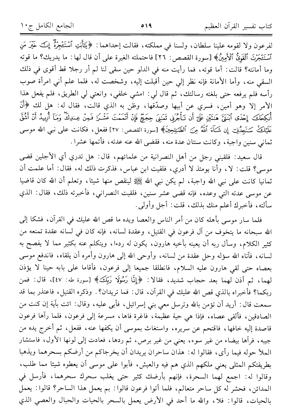 قال سعيد: فلقيني رجل من أهل النصرانية من علمائهم، قال: هل تدري أي الأجلين قضى موسى؟ قلت: لا، وأنا يومئذ لا أدري، فلقيت ابن عباس، فذكرت ذلك له، فقال: أما علمت أن ثمانيا كانت على نبي الله واجبة، لم يكن نبي الله - صلى الله عليه وسلم - لينقص منها شيئا، وتعلم أن الله كان قاضيا عن موسى عدته التي وعده، فإنه قضى عشر سنين، فلقيت النصراني، فأخبرته ذلك، فقال: الذي سألته، فأخبرك أعلم منك بذلك، قلت: أجل وأولى.