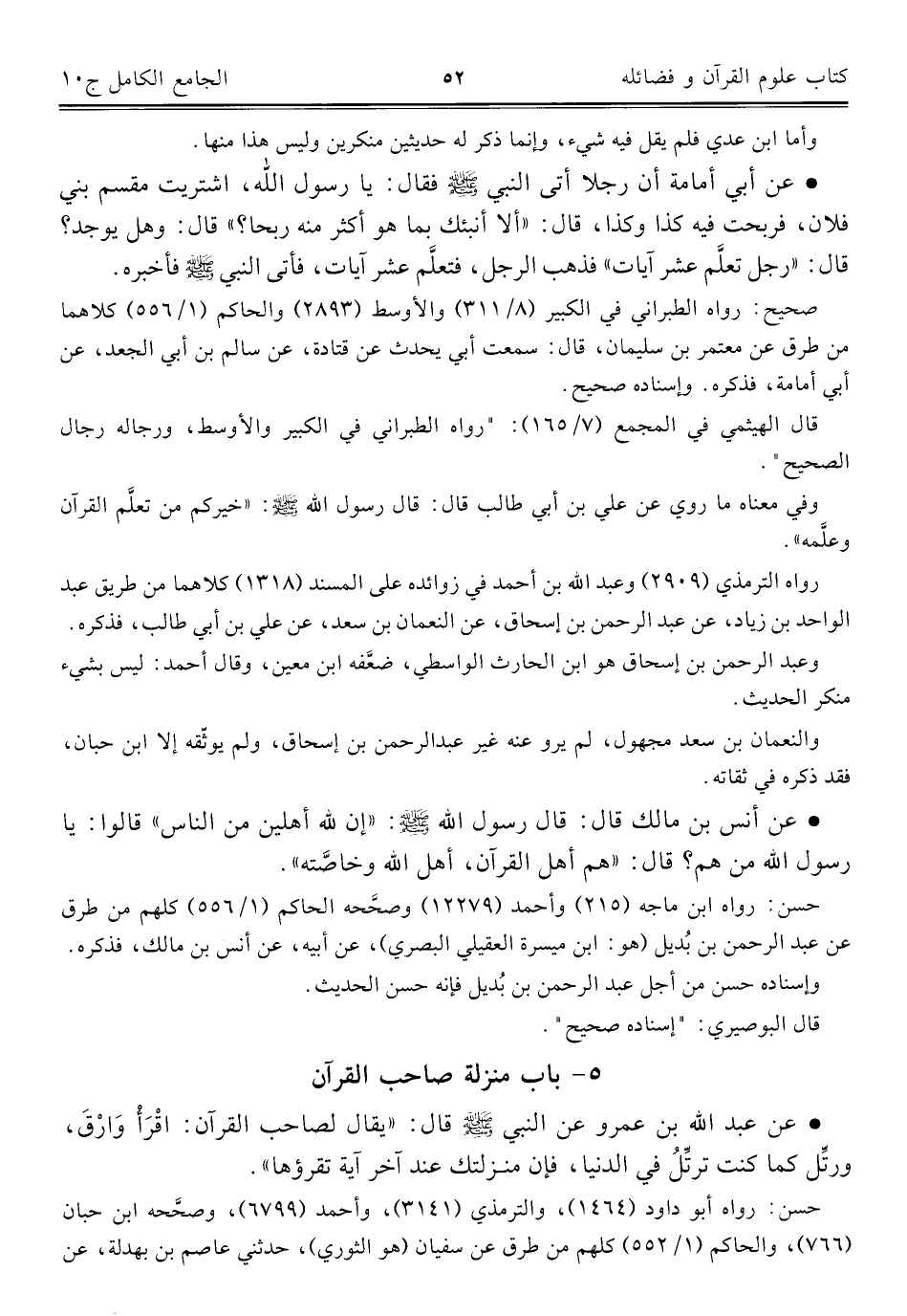 ٥ - باب منزلة صاحب القرآن